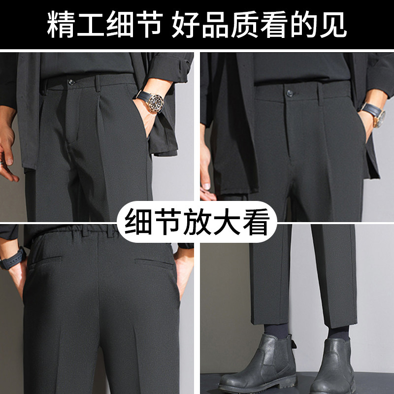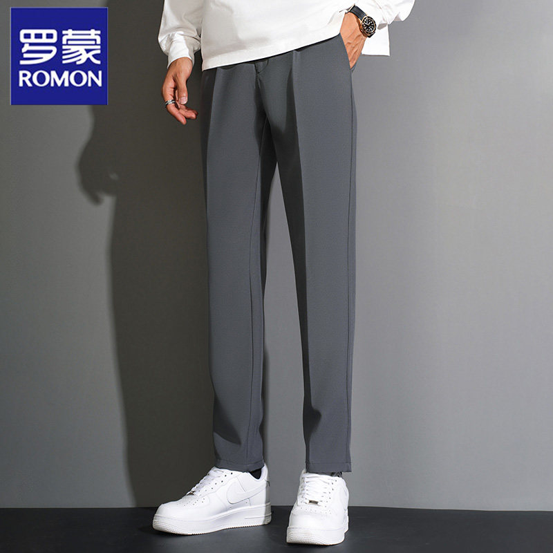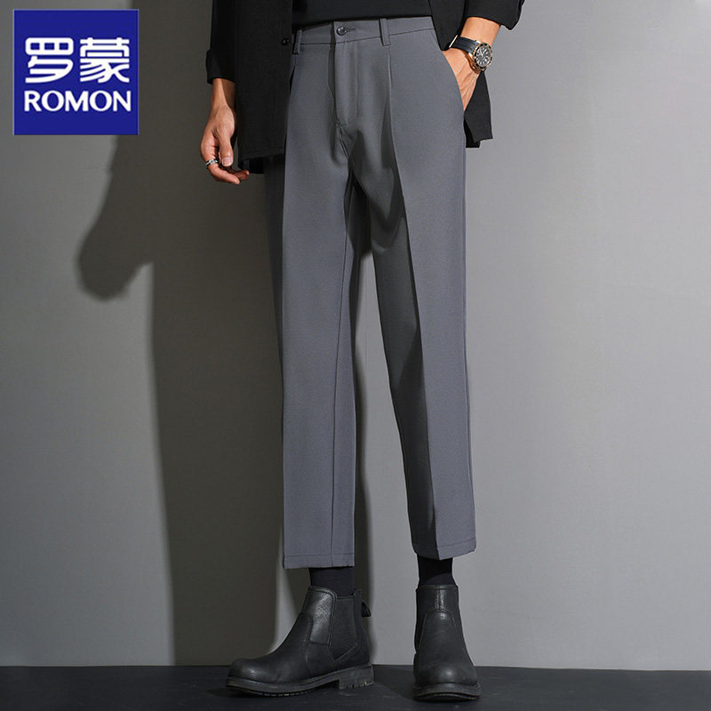 罗蒙小西裤男士秋季厚款垂感直筒宽松九分休闲裤阔腿西装长裤子男