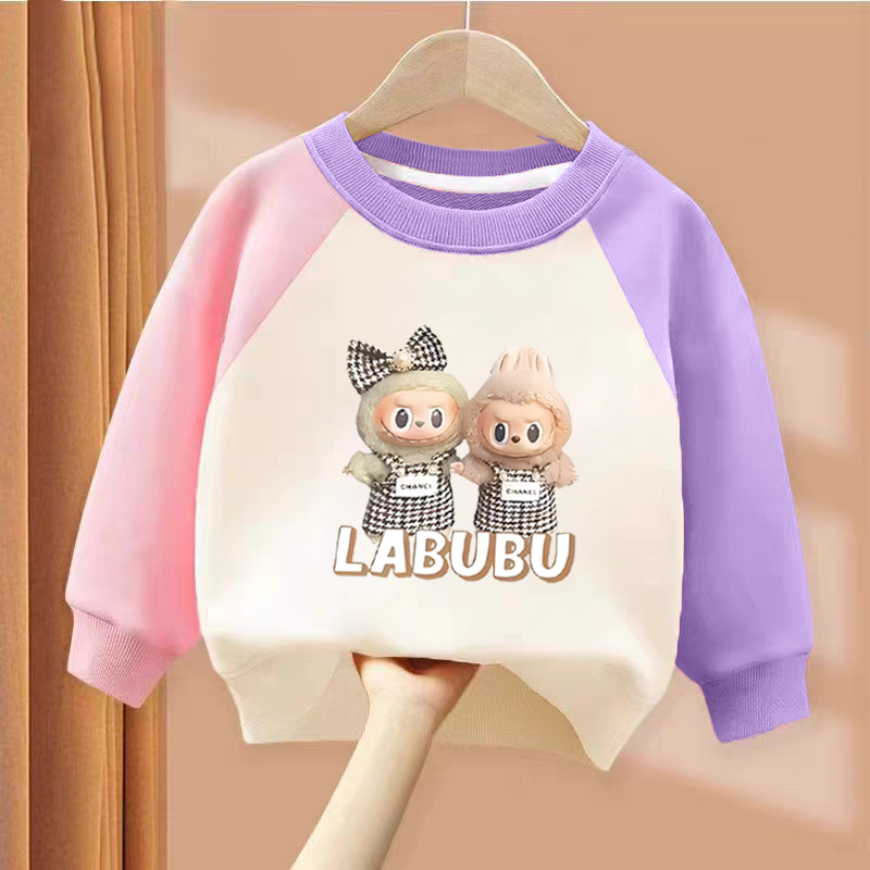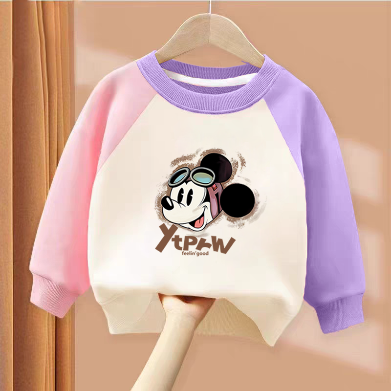 100%纯棉女童装拼色圆领卫衣春秋季新款中小儿童宝宝简约洋气上衣