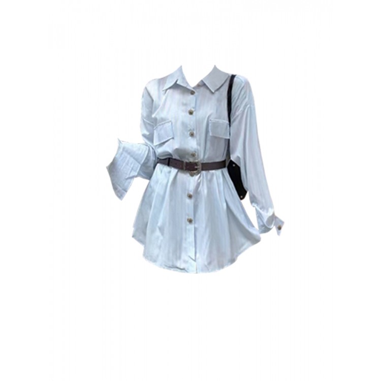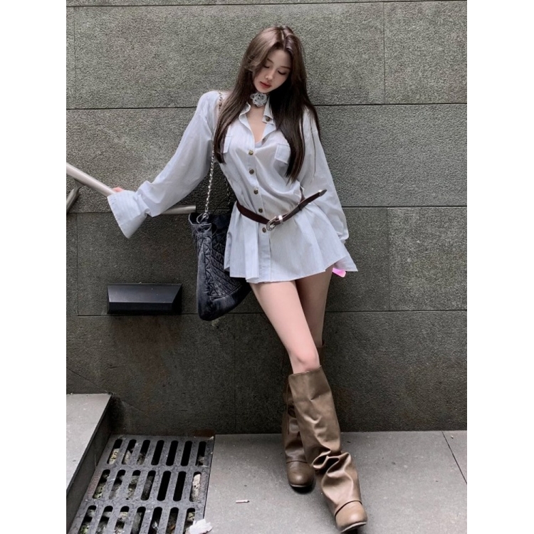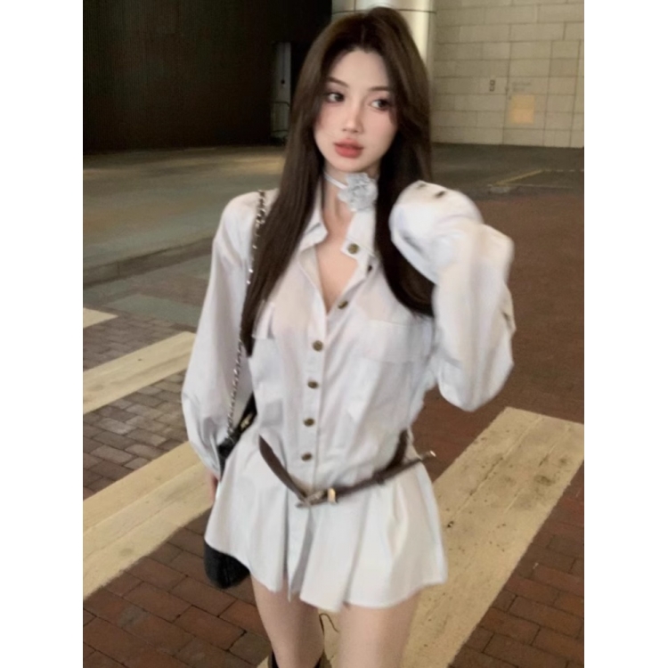 宽松韩版polo领衬衫连衣裙女秋季设计感长袖衬衣裙子收腰a字短裙