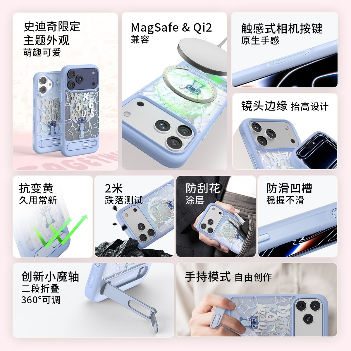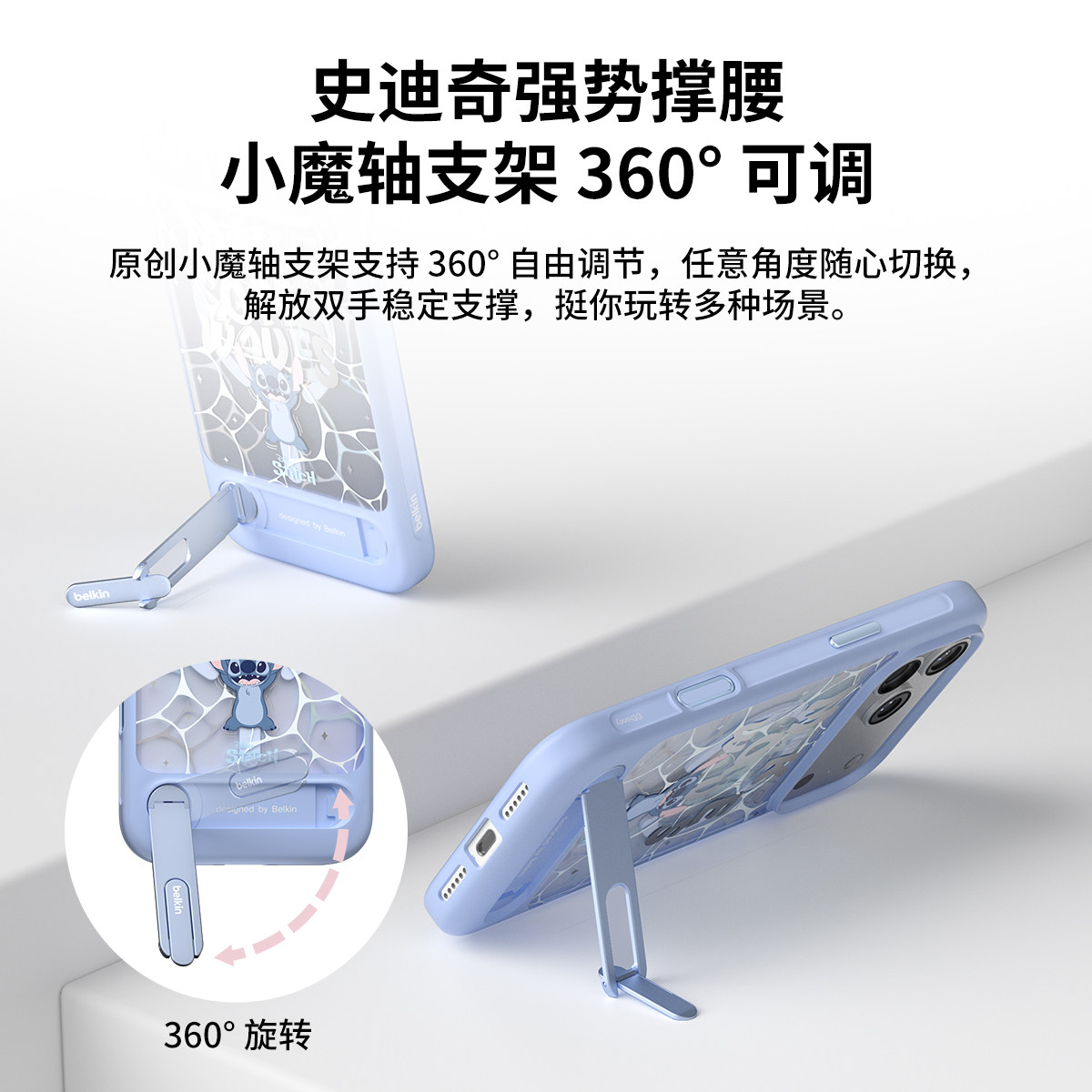 Belkin贝尔金迪士尼史迪奇360°旋转磁吸支架手机壳适用苹果17iPhone17ProMax保护套兼容MagSafe&Qi2无线防摔