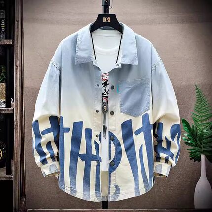 牛仔长袖衬衫男款春秋季青少年潮牌宽松潮流衬衣初中高中学生外套