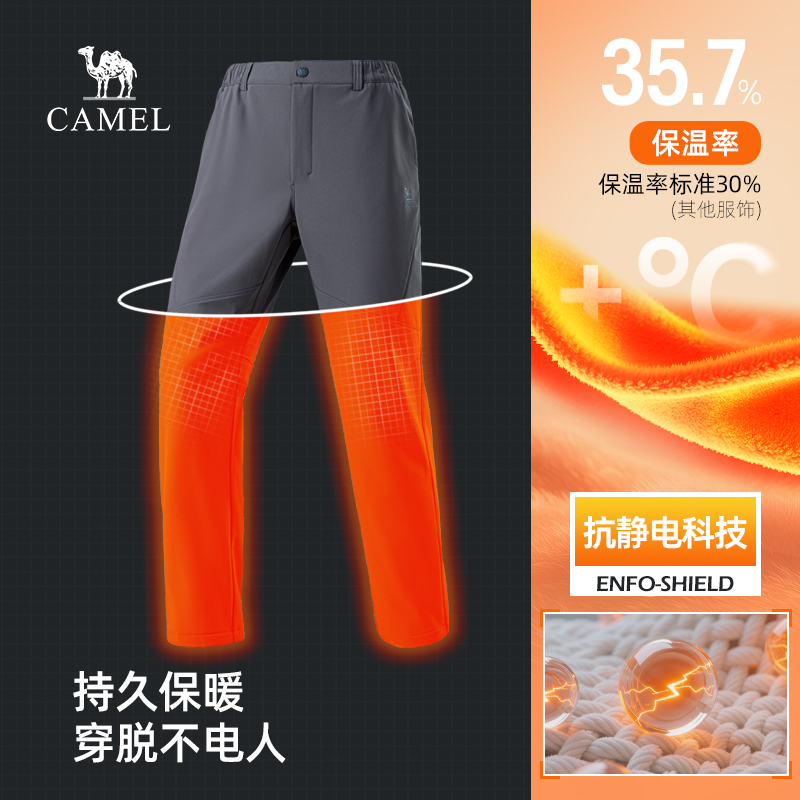 骆驼男装2025秋冬新款登山裤休闲裤户外加绒保暖软壳裤三防抗静电