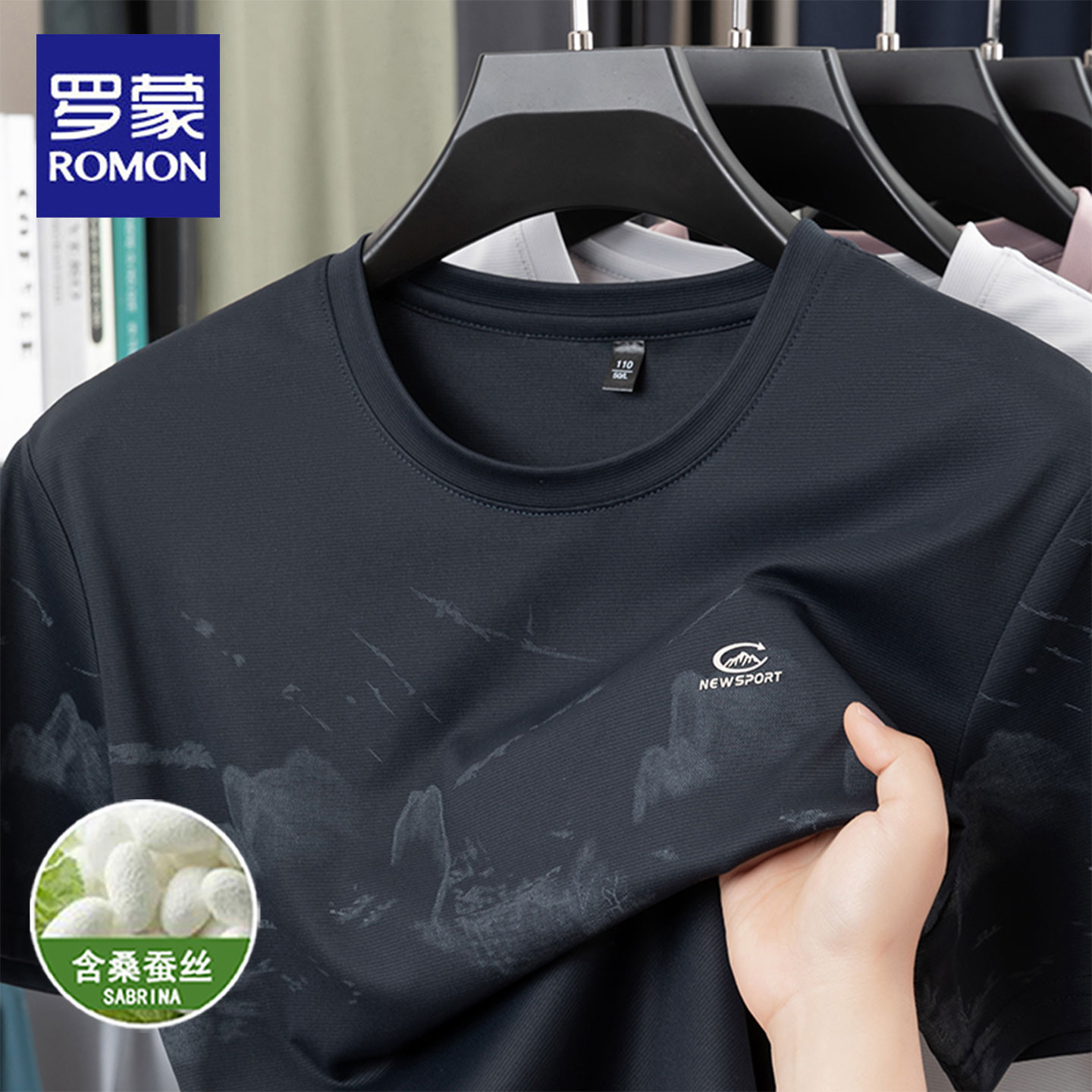 罗蒙桑蚕丝透气短袖T恤男士冰丝