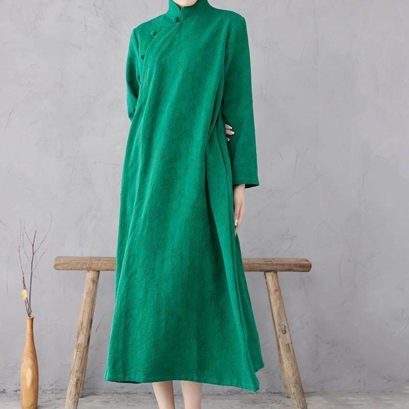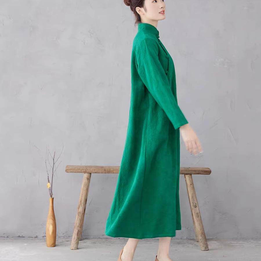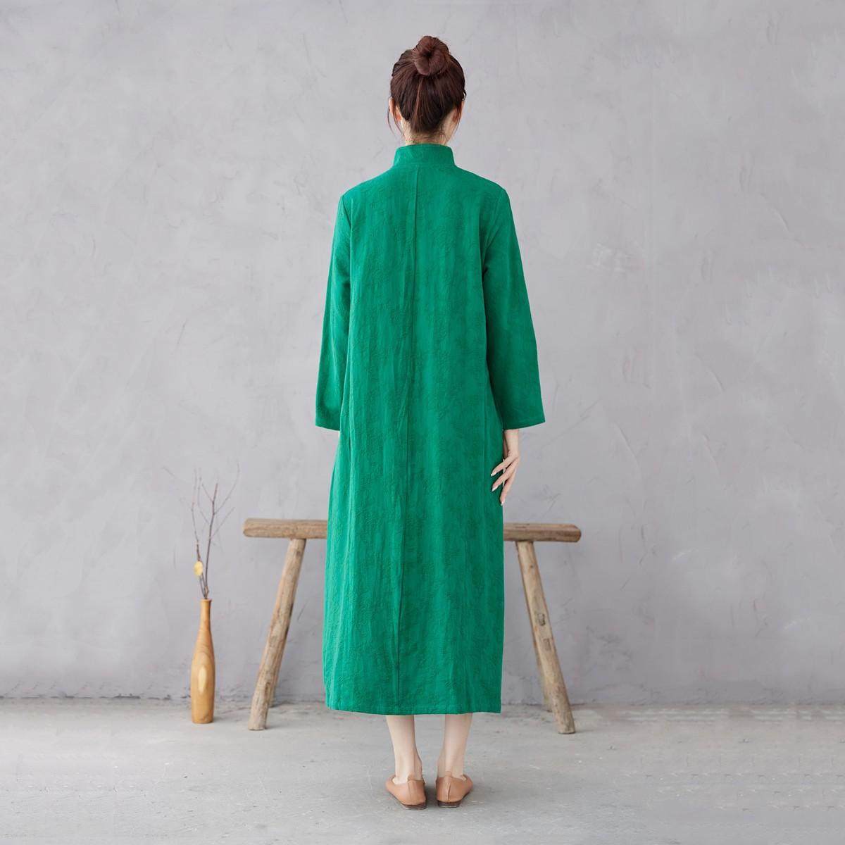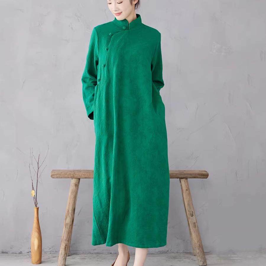 长袖长裙棉麻提花旗袍中国风