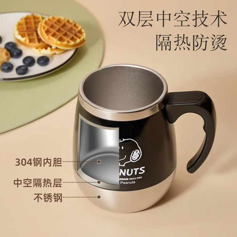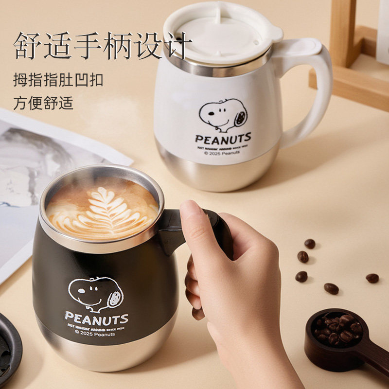 史努比马克杯带盖水杯家用喝水早餐杯不锈钢办公室个人专用咖啡杯
