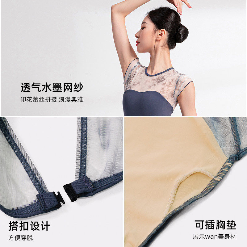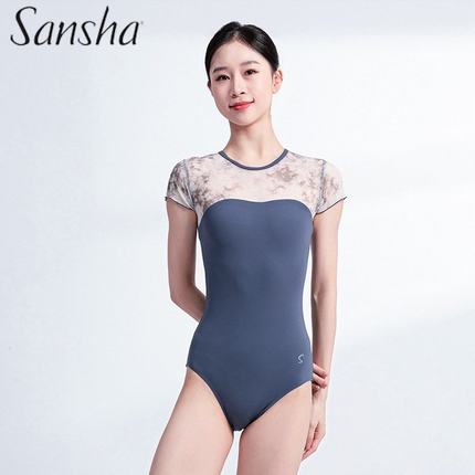 Sansha 三沙舞蹈服女 印花短袖芭蕾舞练功服连体服体操形体服中裙