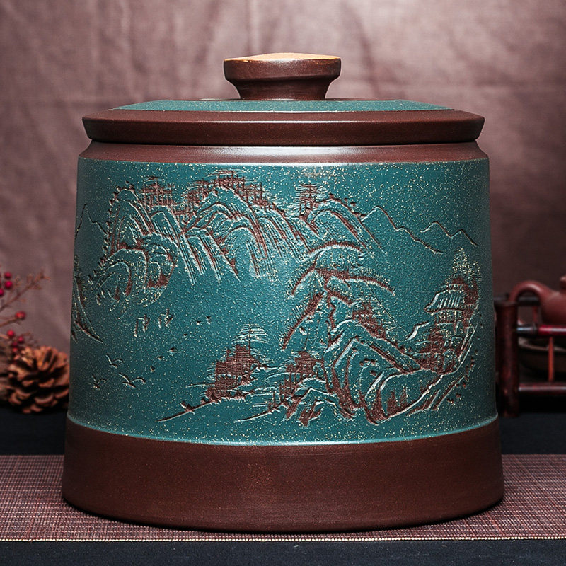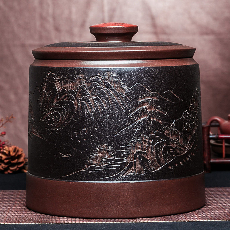 宜兴紫砂茶叶罐特大码号手工密封醒茶器米桶缸七子饼普洱大号罐