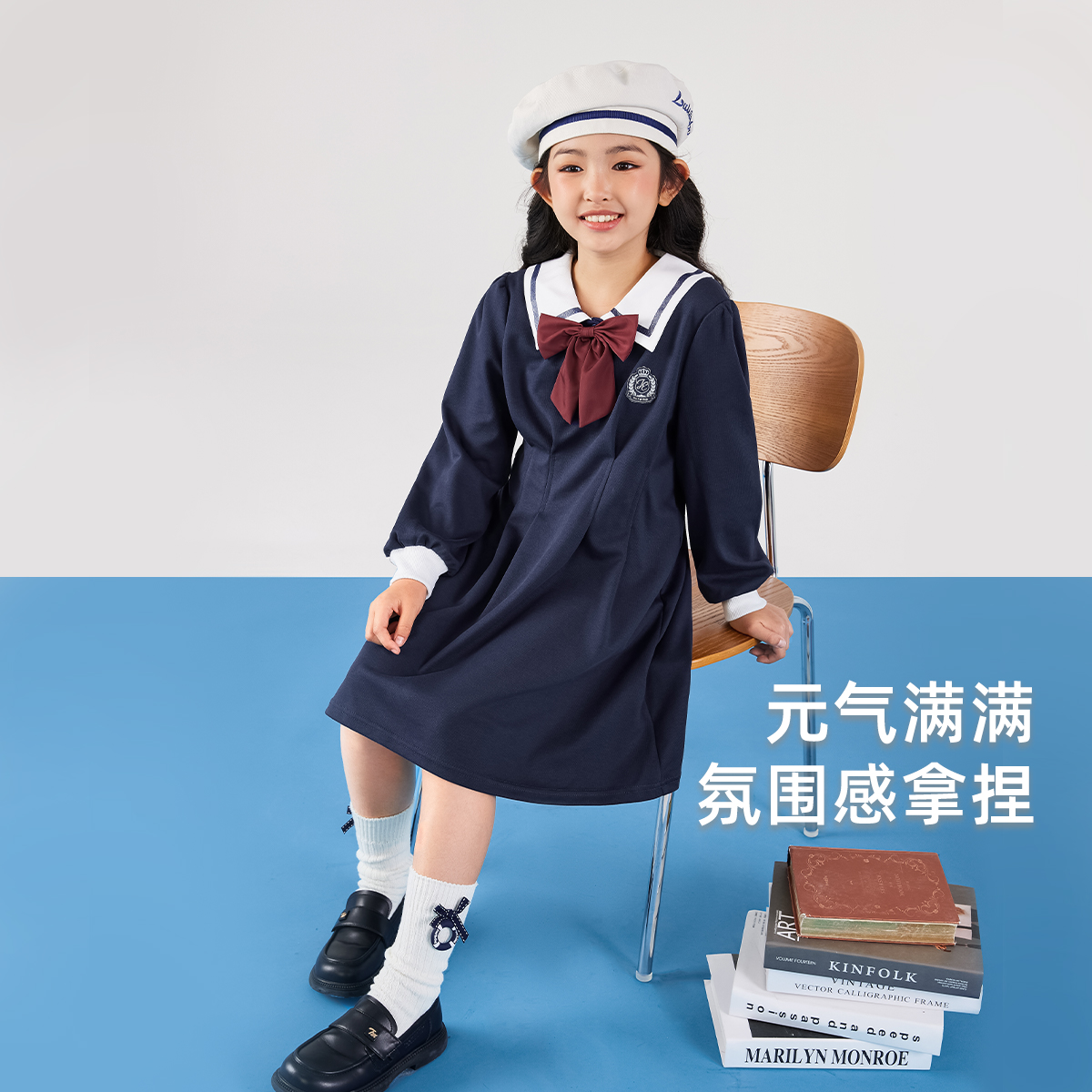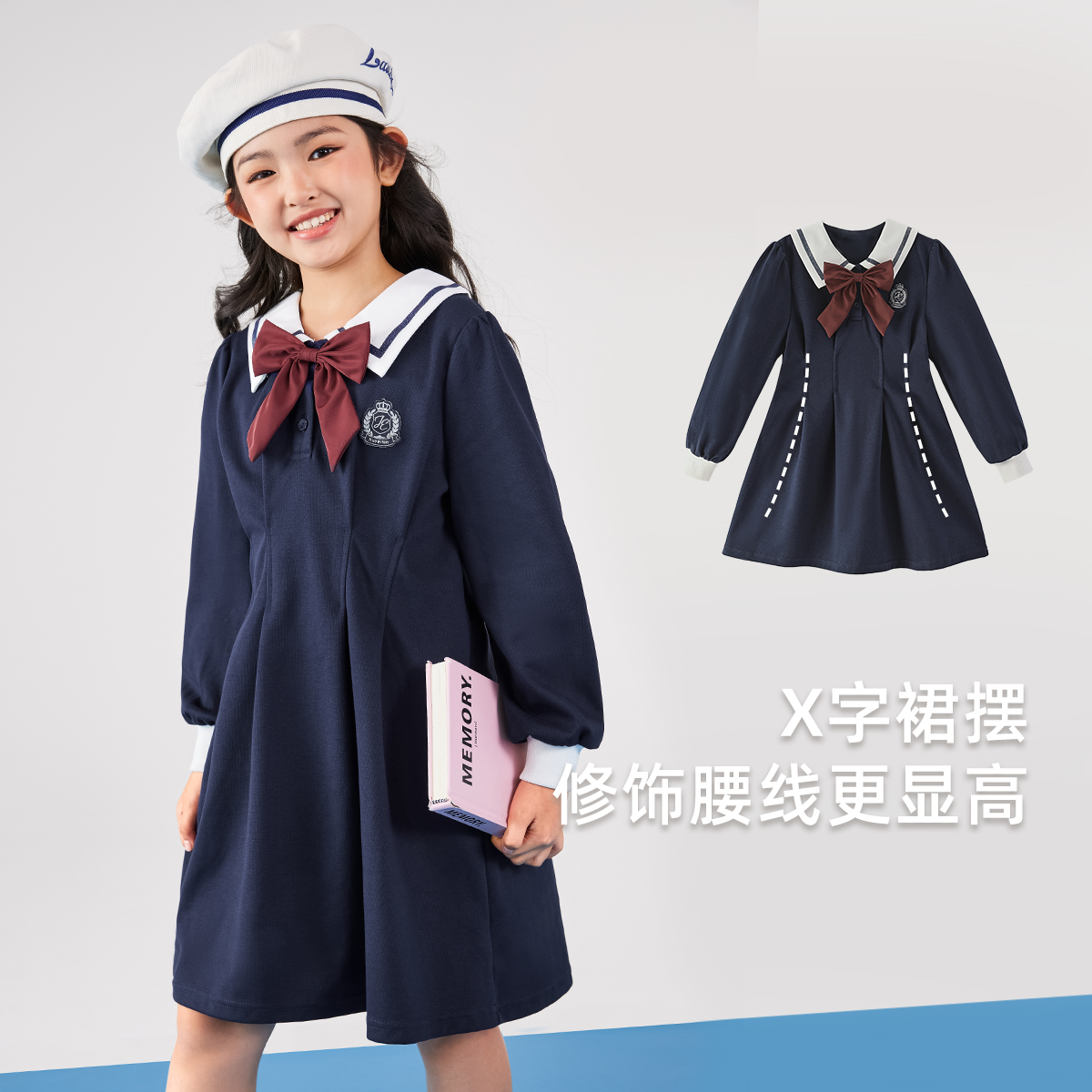女童连衣裙春秋8大童学院风裙子儿童时尚A字裙2025宝宝秋装卫衣裙