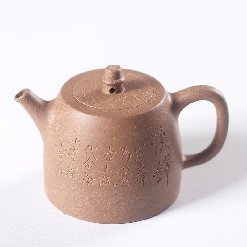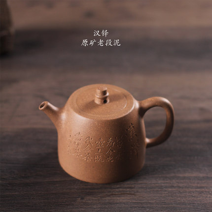 驯砂记宜兴原矿老段泥全手工刻绘半手工汉铎180cc紫砂壶 茶壶茶具