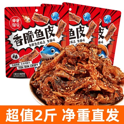 【超值2斤】甜辣鳕鱼皮蜜汁香辣海味零食开袋即食香酥炸鱼皮批发