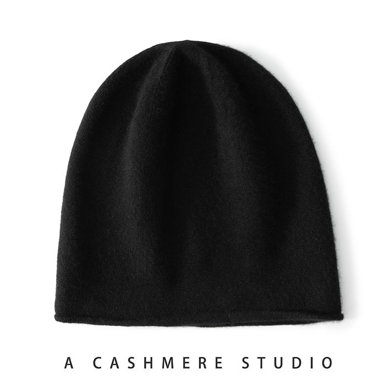 100%纯山羊绒帽子男女情侣款保暖护耳堆堆帽冷帽包头帽秋冬24