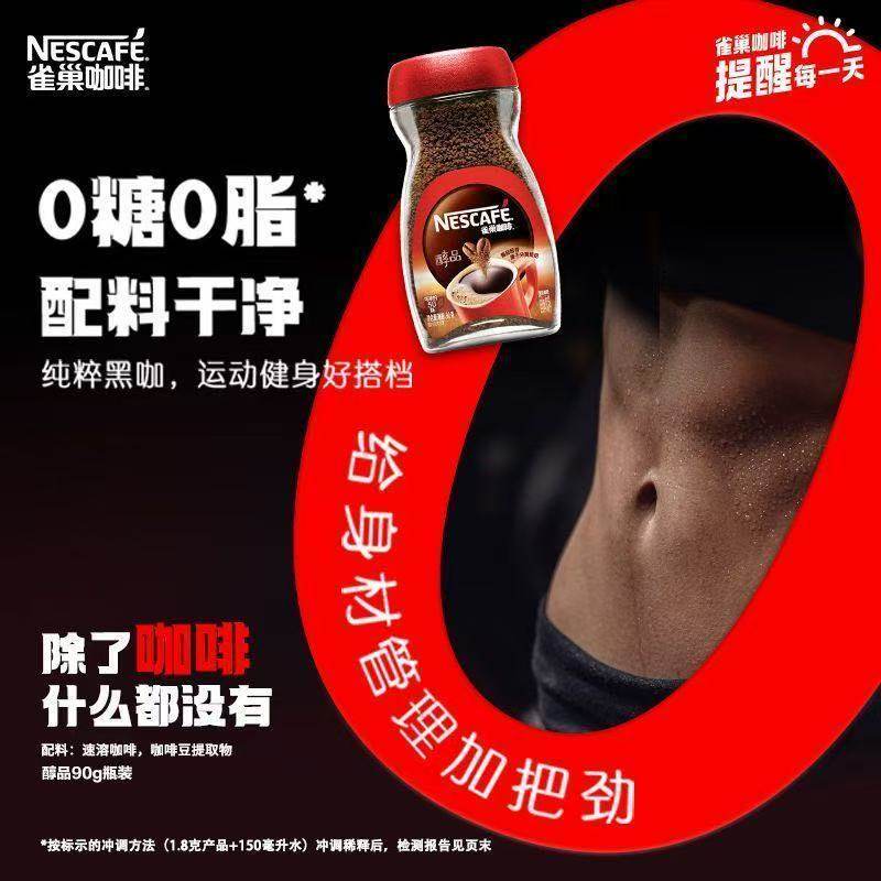 雀巢醇品咖啡美式速溶黑咖啡粉无蔗糖0脂深度烘焙办公室提神