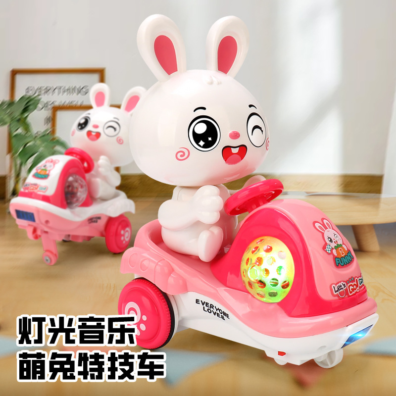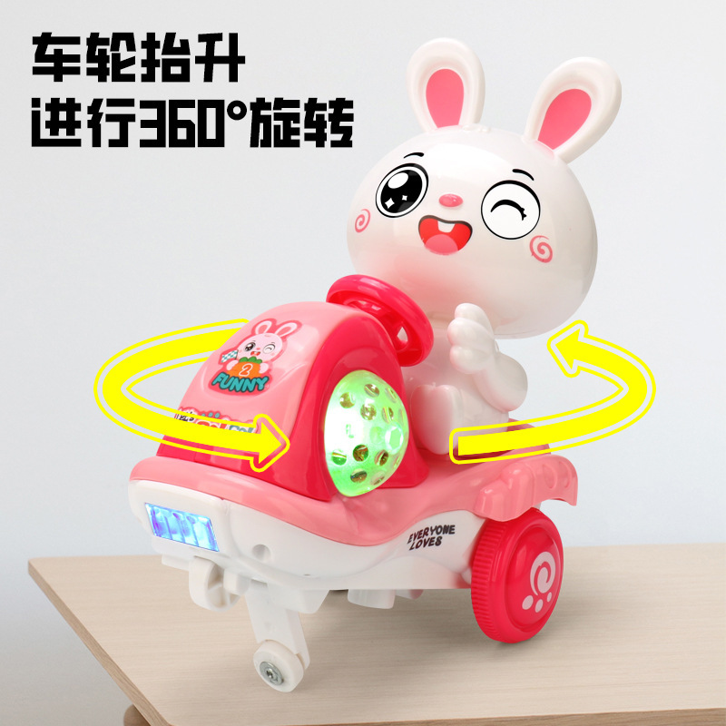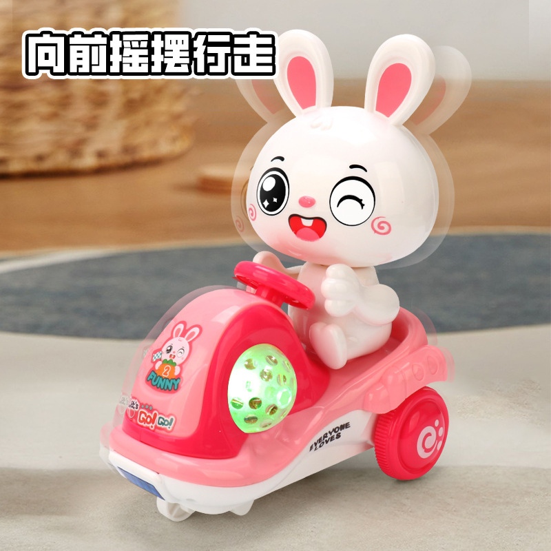 儿童益智电动玩具车小萌兔特技摇摆三轮车可爱声光音乐车女孩礼物