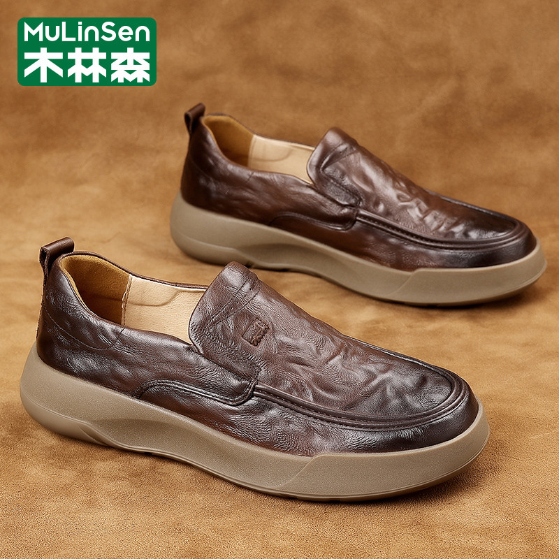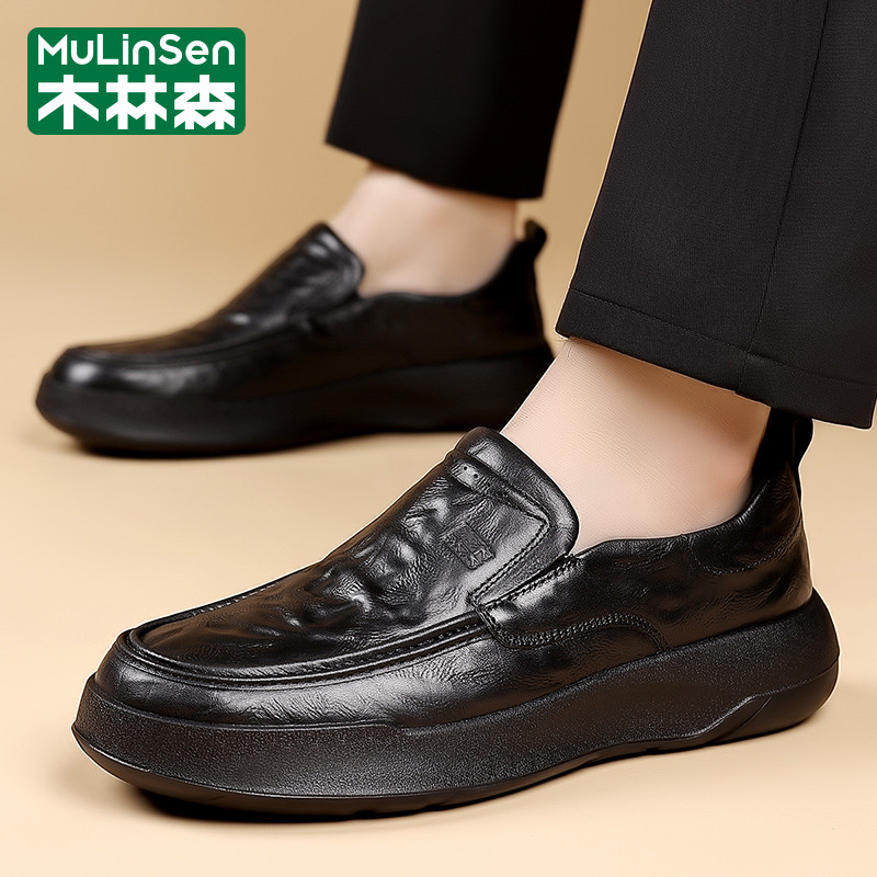 木林森皮鞋男款冬季商务英伦休闲一脚蹬软底板鞋爸爸乐福豆豆潮鞋