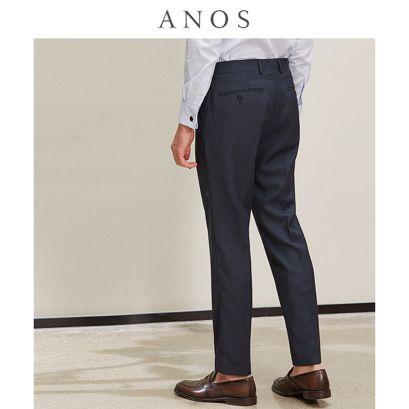 ANOS美利奴羊毛面料藏青色西装裤海军蓝男士商务职业正装修身西裤