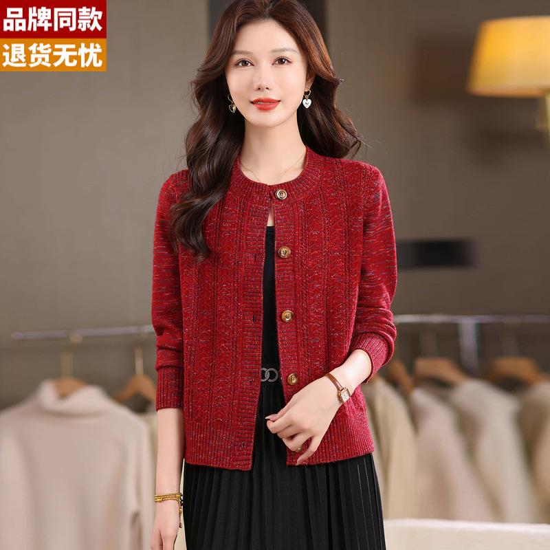 亮丝羊毛针织开衫女2025春秋季新款洋气妈妈外搭披肩短款毛衣外套