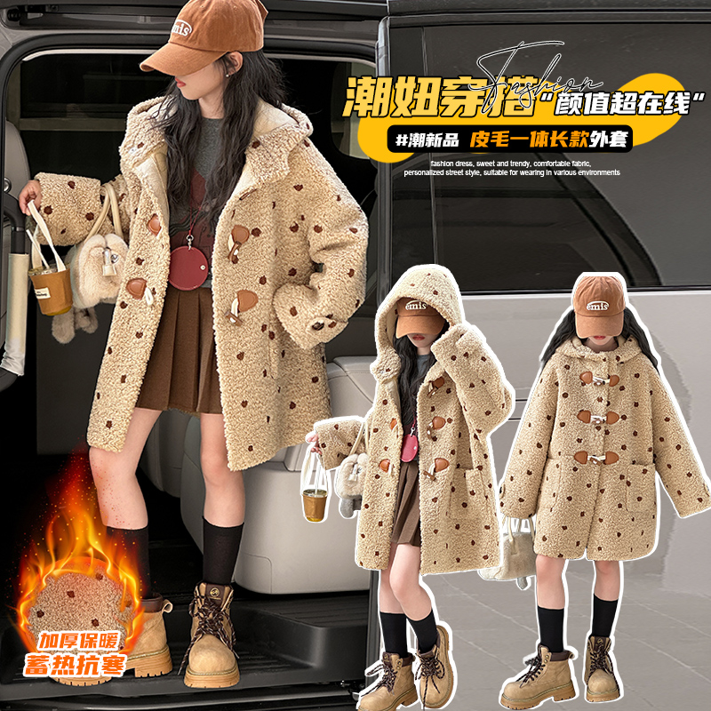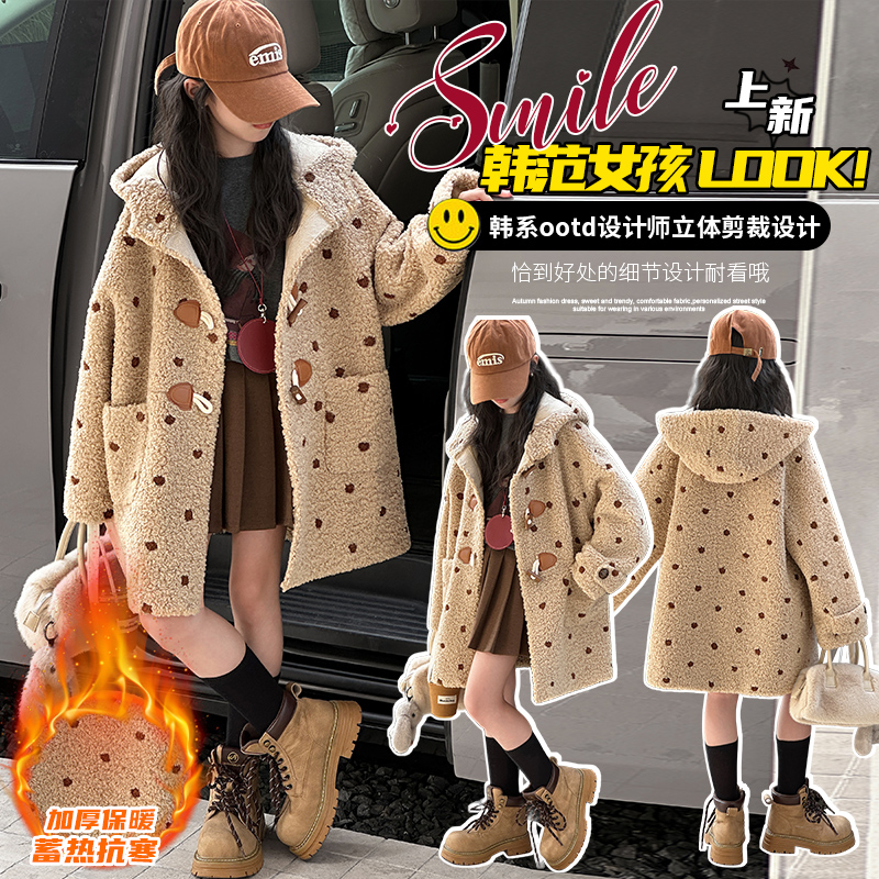 女童秋冬外套2025新款中大童韩版加厚保暖中长款毛毛衣儿童棉服潮