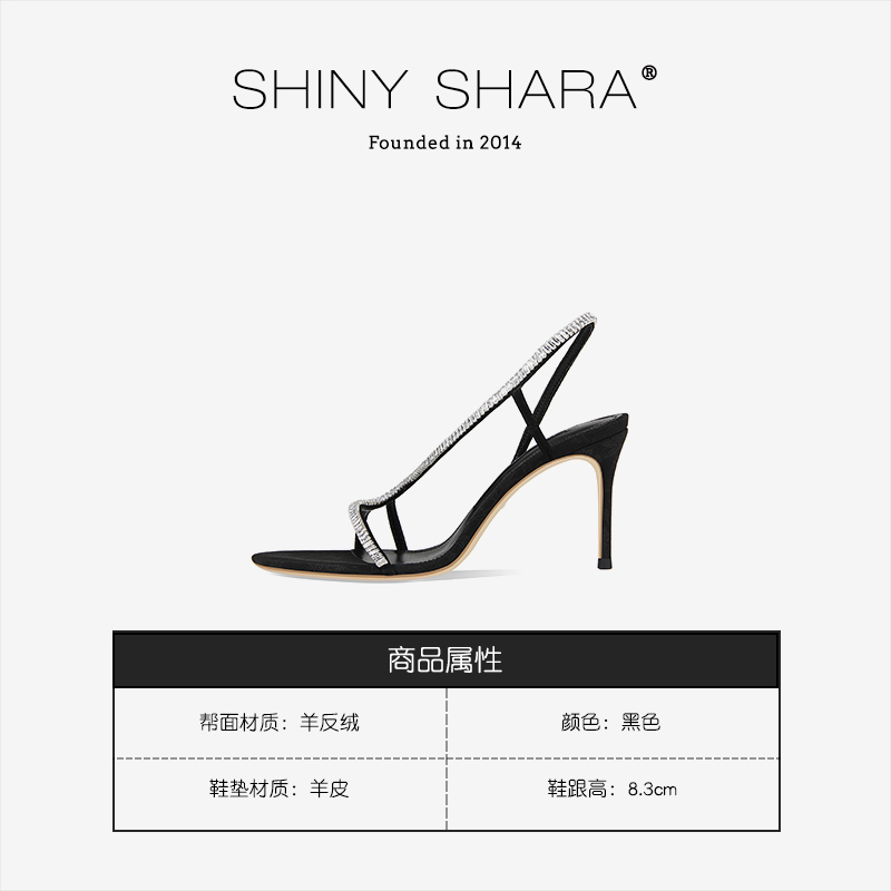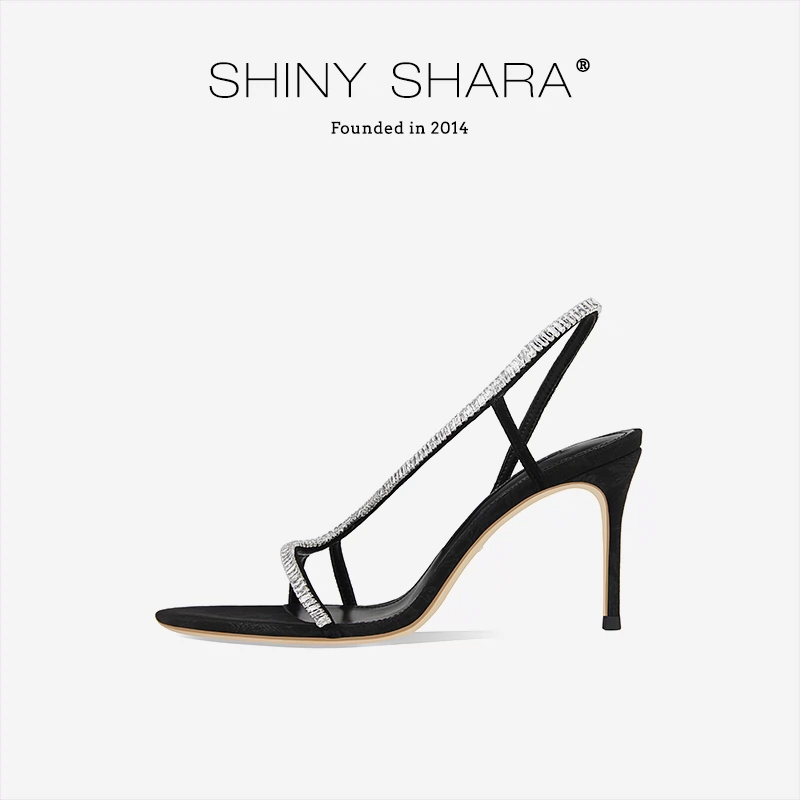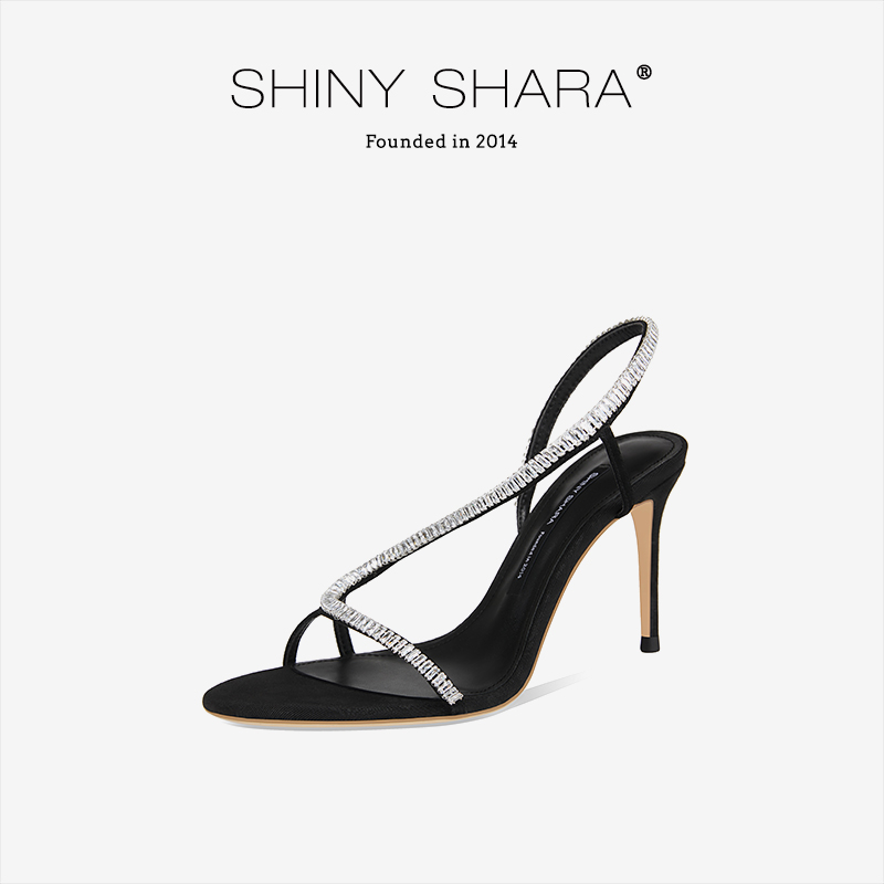 Shiny Shara/诗莎2025夏季新款高跟细跟黑色水钻凉鞋女夏高跟鞋