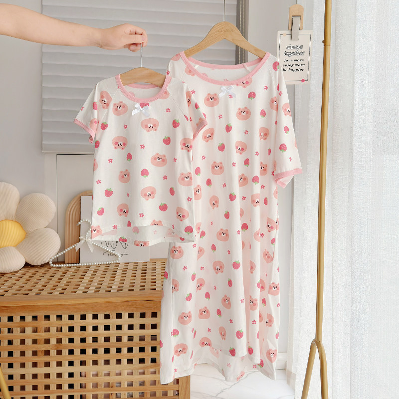 亲子连衣裙女童宝宝纯棉春夏母女装婴儿夏季薄款短袖哈衣爬服睡衣