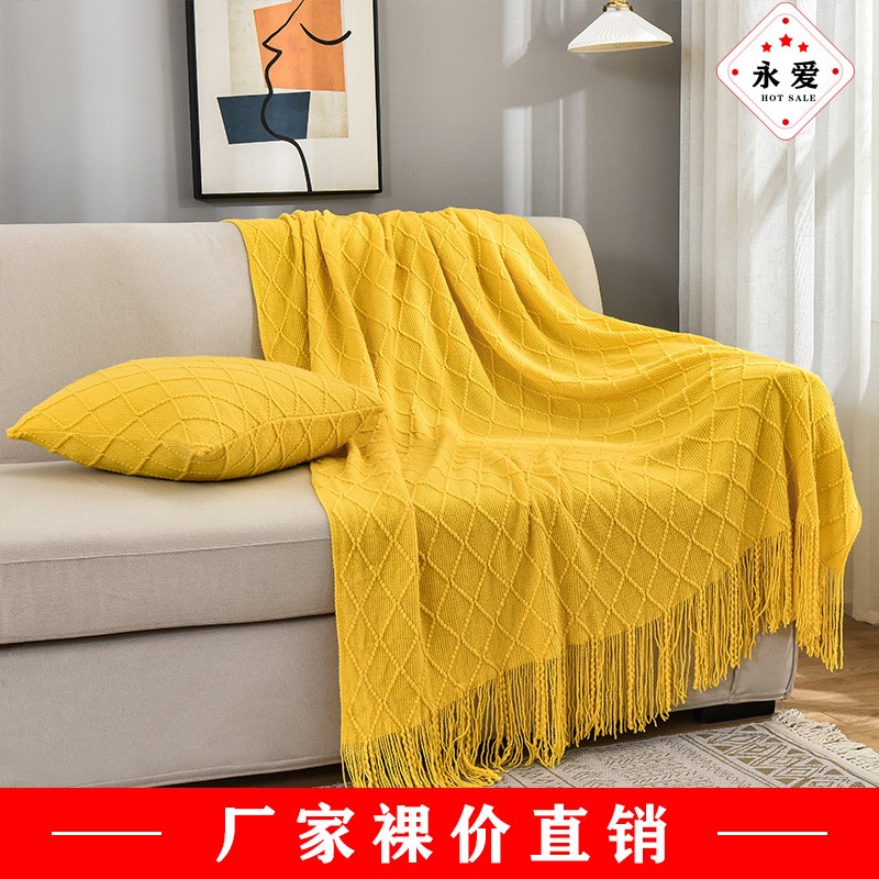 针织毯民宿床尾装饰毯床搭加厚办公室午睡毯流苏披肩盖毯沙发毯子