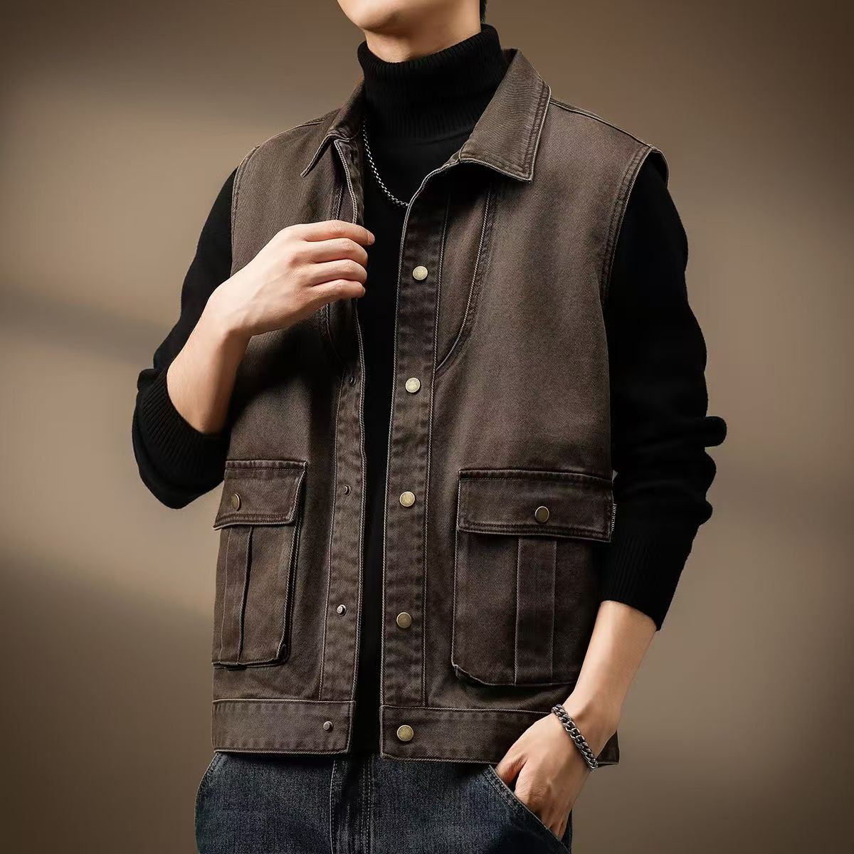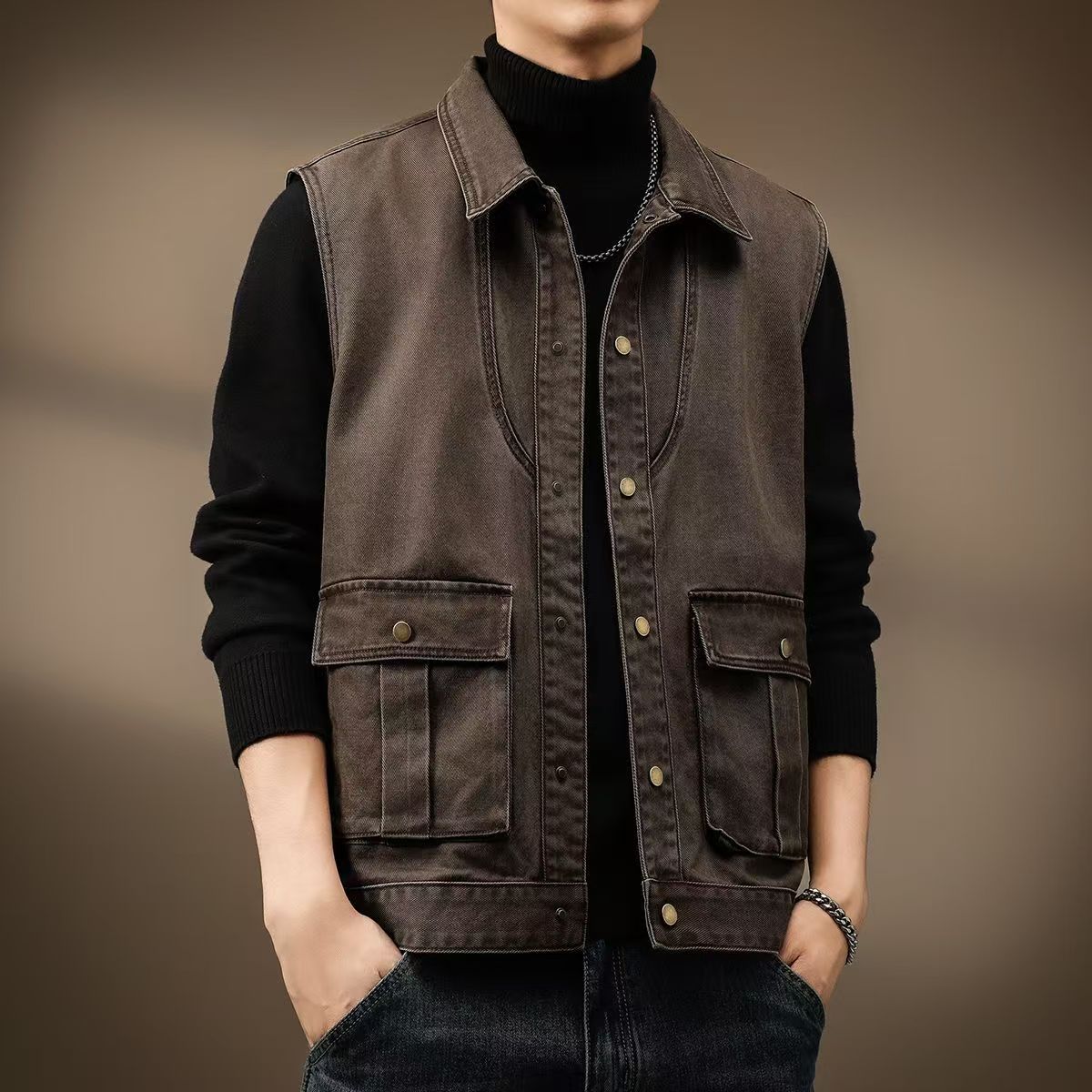 美式马甲背心2025春秋户外大码宽松山系复古战术坎肩夹克工装外套
