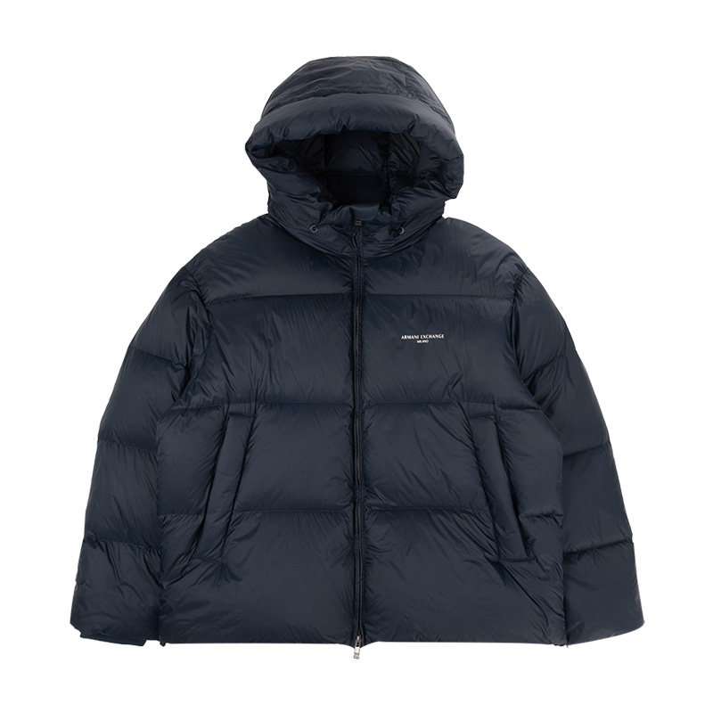 Armani Exchange阿玛尼男缎面连帽拉链口袋长袖羽绒服男士新款XY
