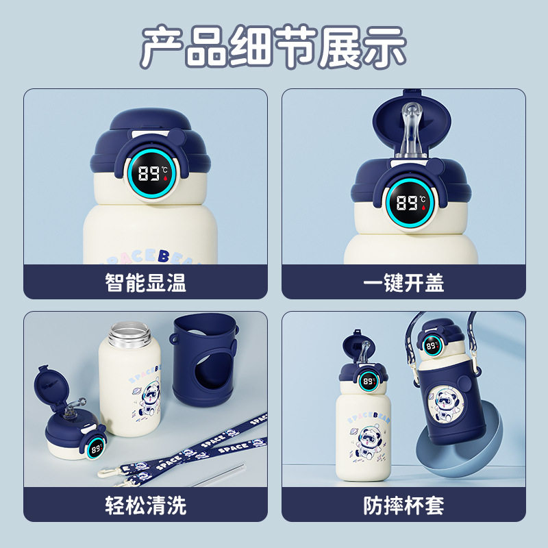儿童保温杯316不锈钢智能显温双饮学生上学专用水壶高颜值水杯女