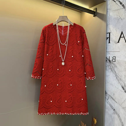 胖MM加肥钉珠边圆领蕾丝花上衣大码女装法式气质小众设计百搭大衫
