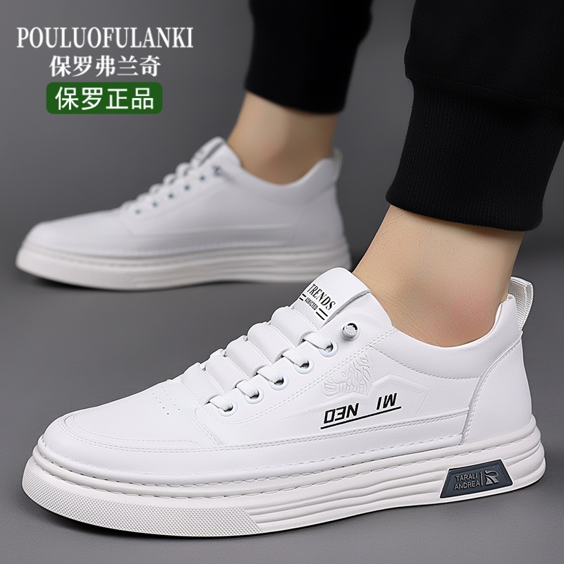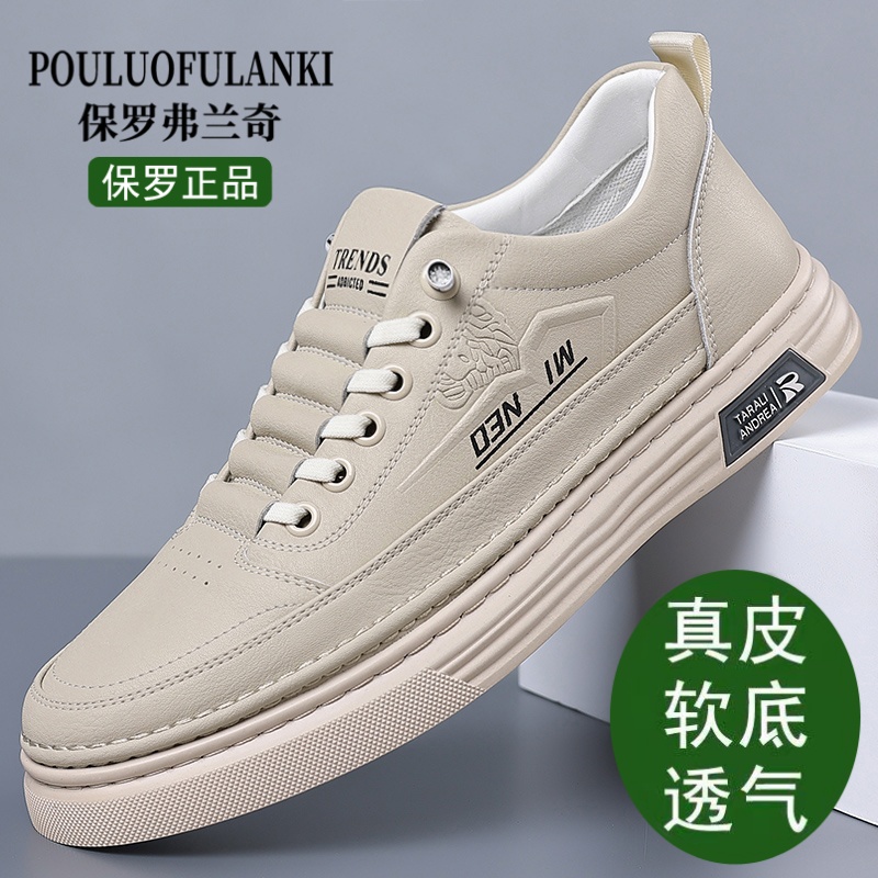 保罗正品男鞋新款男士真皮休闲皮鞋透气软底小白鞋青年潮流板鞋男