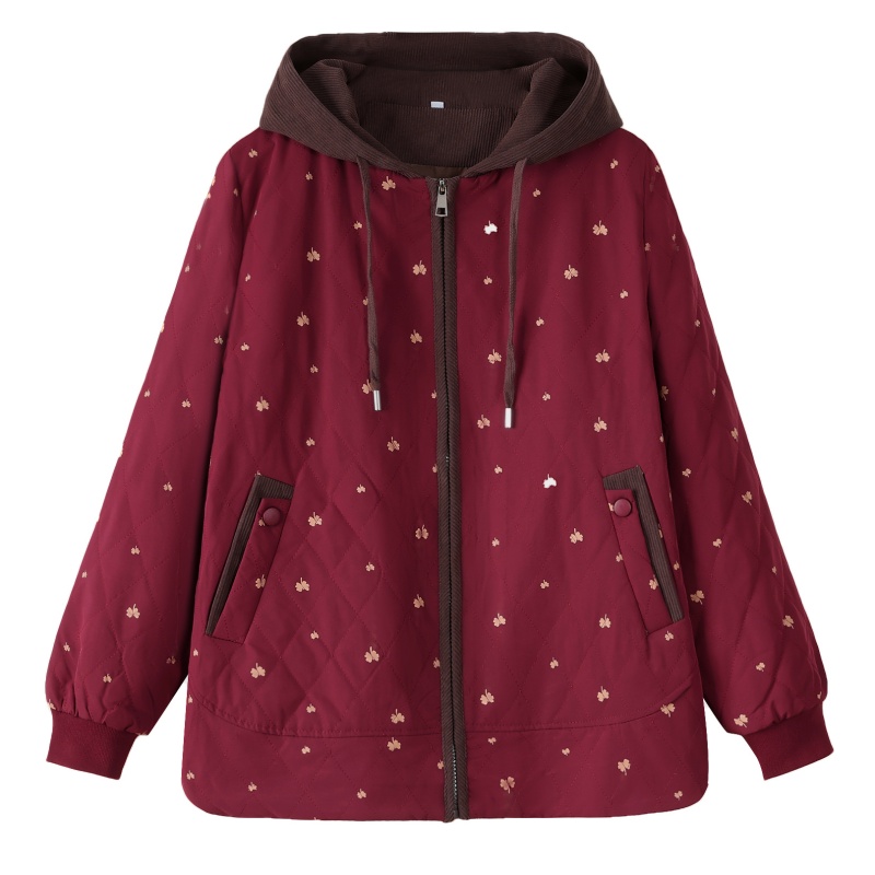 大码妈妈装加肥加大中老年女装春秋装新款连帽夹克外套女休闲上衣