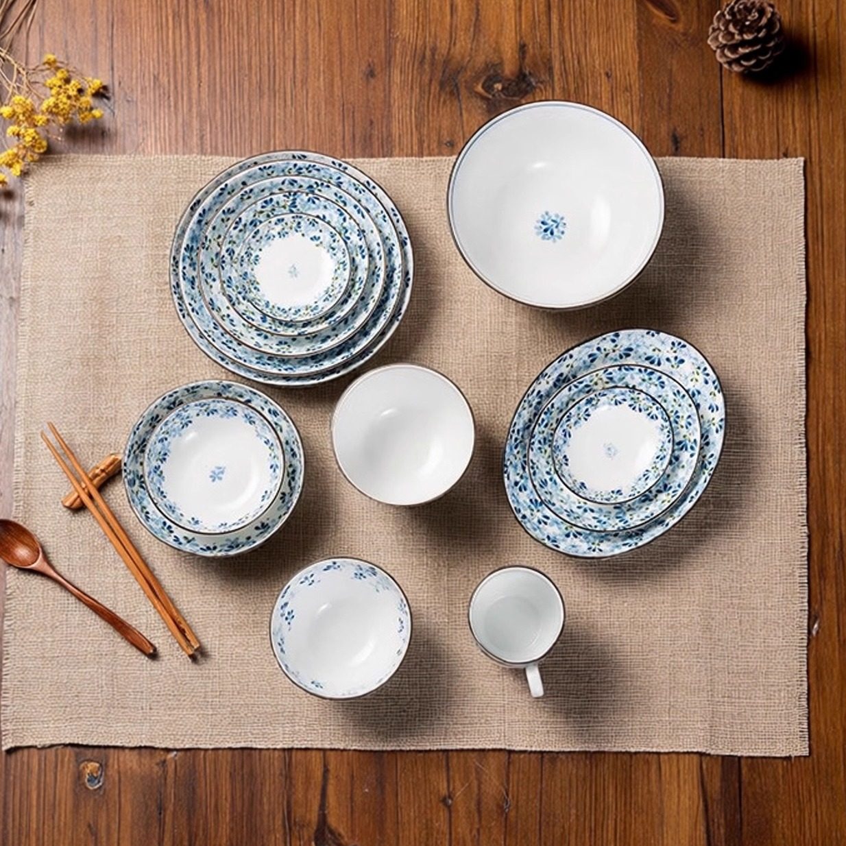 MinoYaki青花瓷碗盘餐具