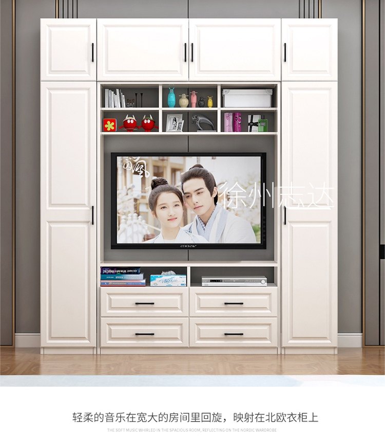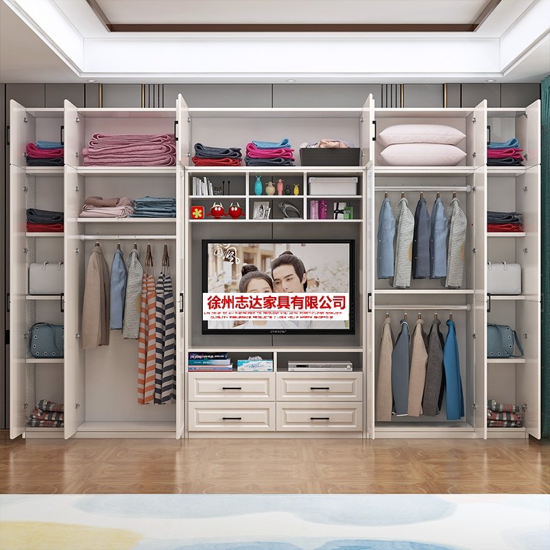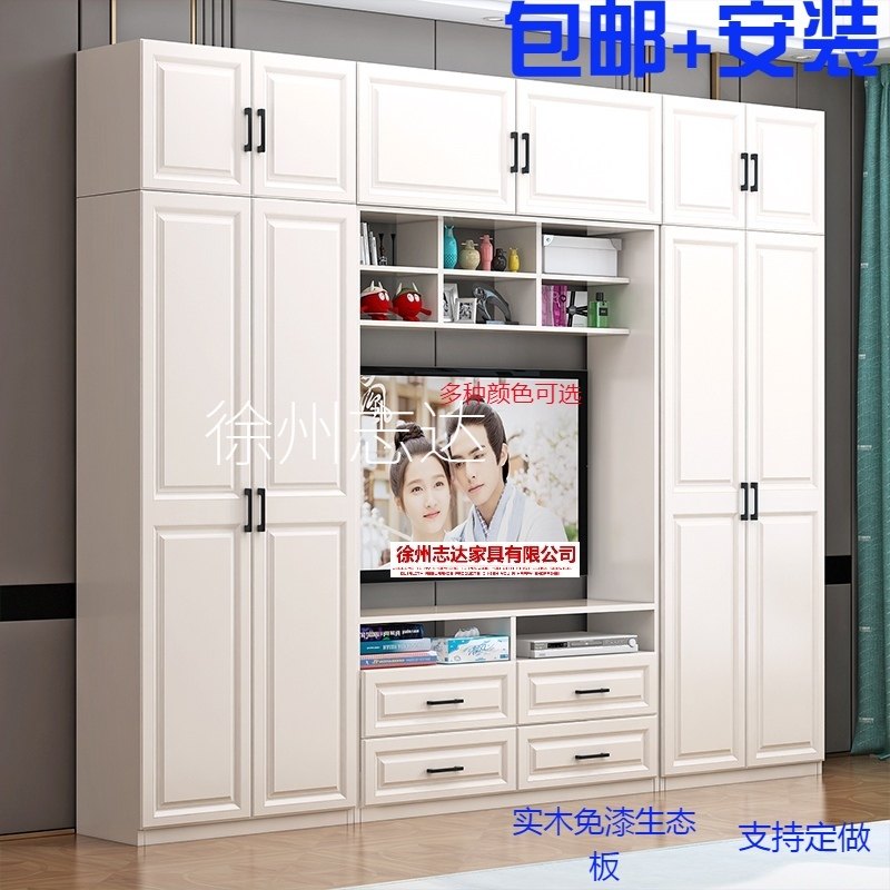 现代简约实木衣柜电视柜组合简易白色卧室柜组装家具组合木质柜子