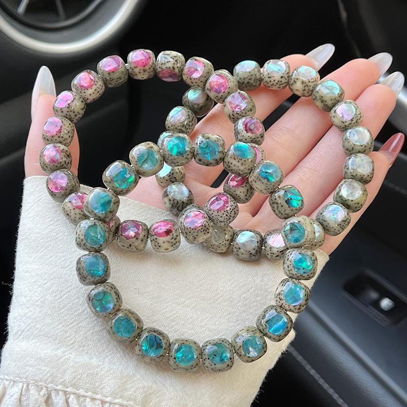 正品鲍贝镶嵌星月菩提手串女绿阴皮石玉料菩提子佛珠文玩盘玩手