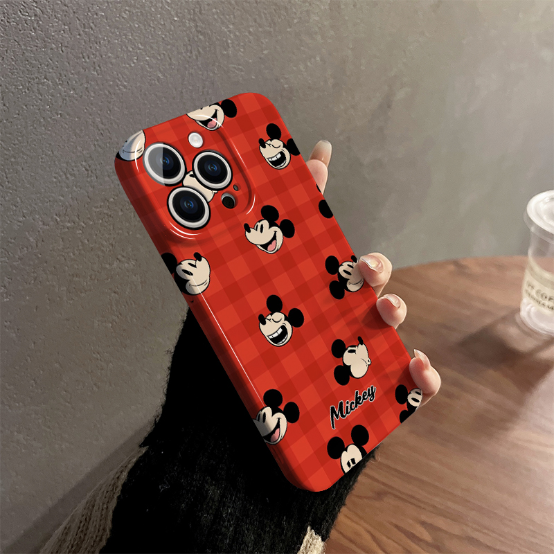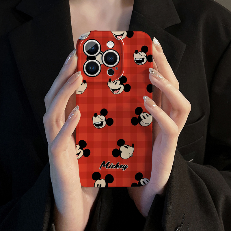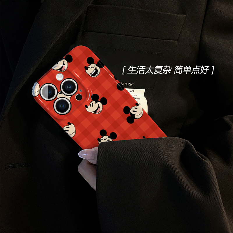ins风日韩格子米奇适用iphone15promax苹果14新款13全包苹果16防摔xr简约mini小众高级12菲林8plus11手机壳女