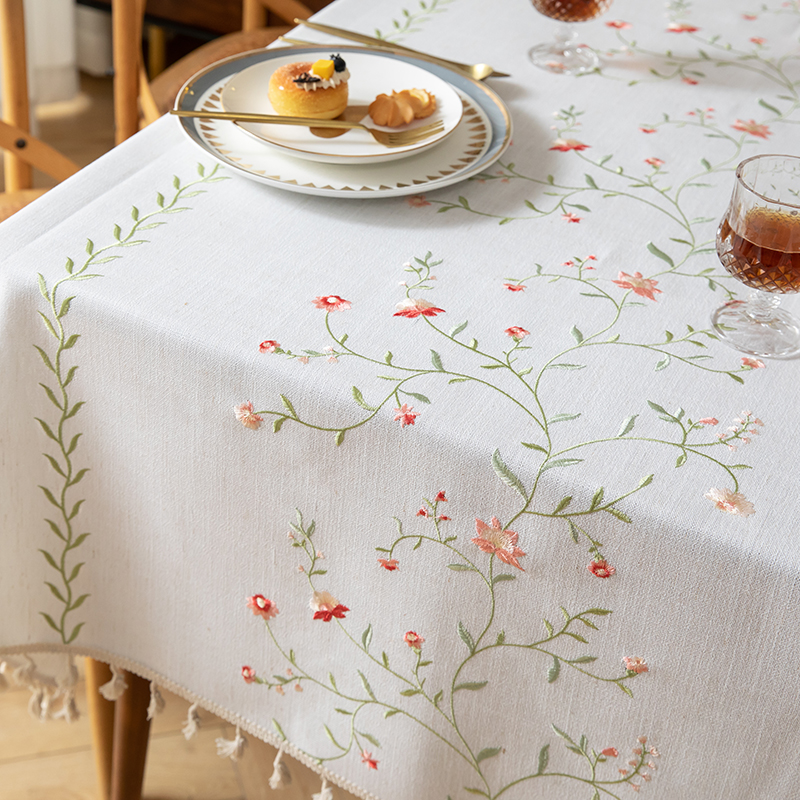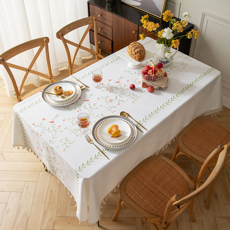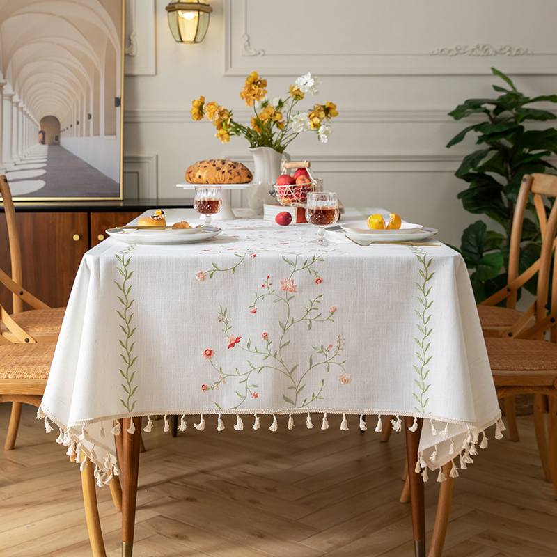 法式田园小清新绣花流苏布艺桌布高级感餐桌棉麻布艺茶几布台布