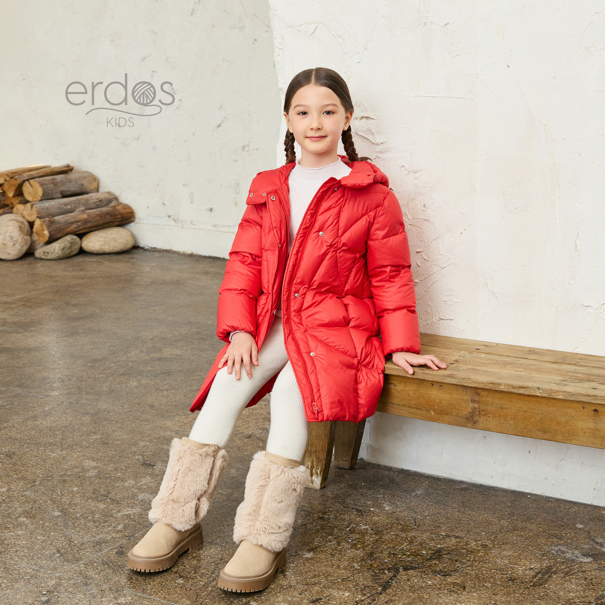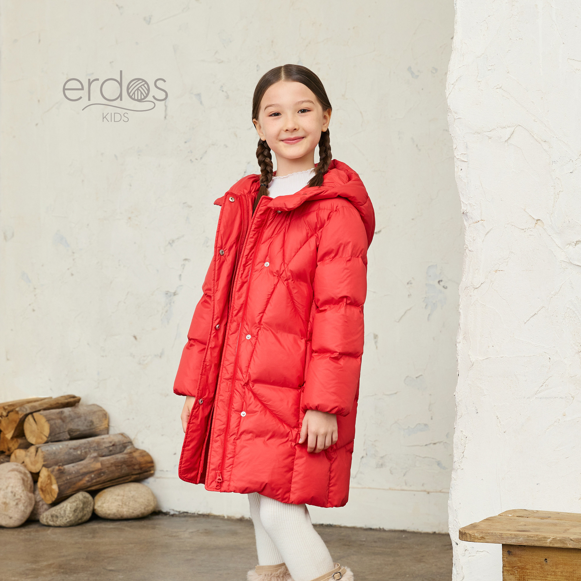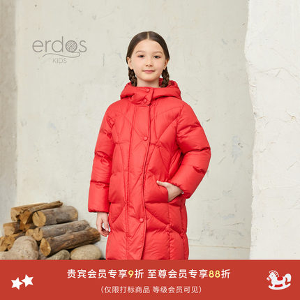 erdosKIDS 鄂尔多斯童装25秋冬新品儿童新年红色保暖长款羽绒服