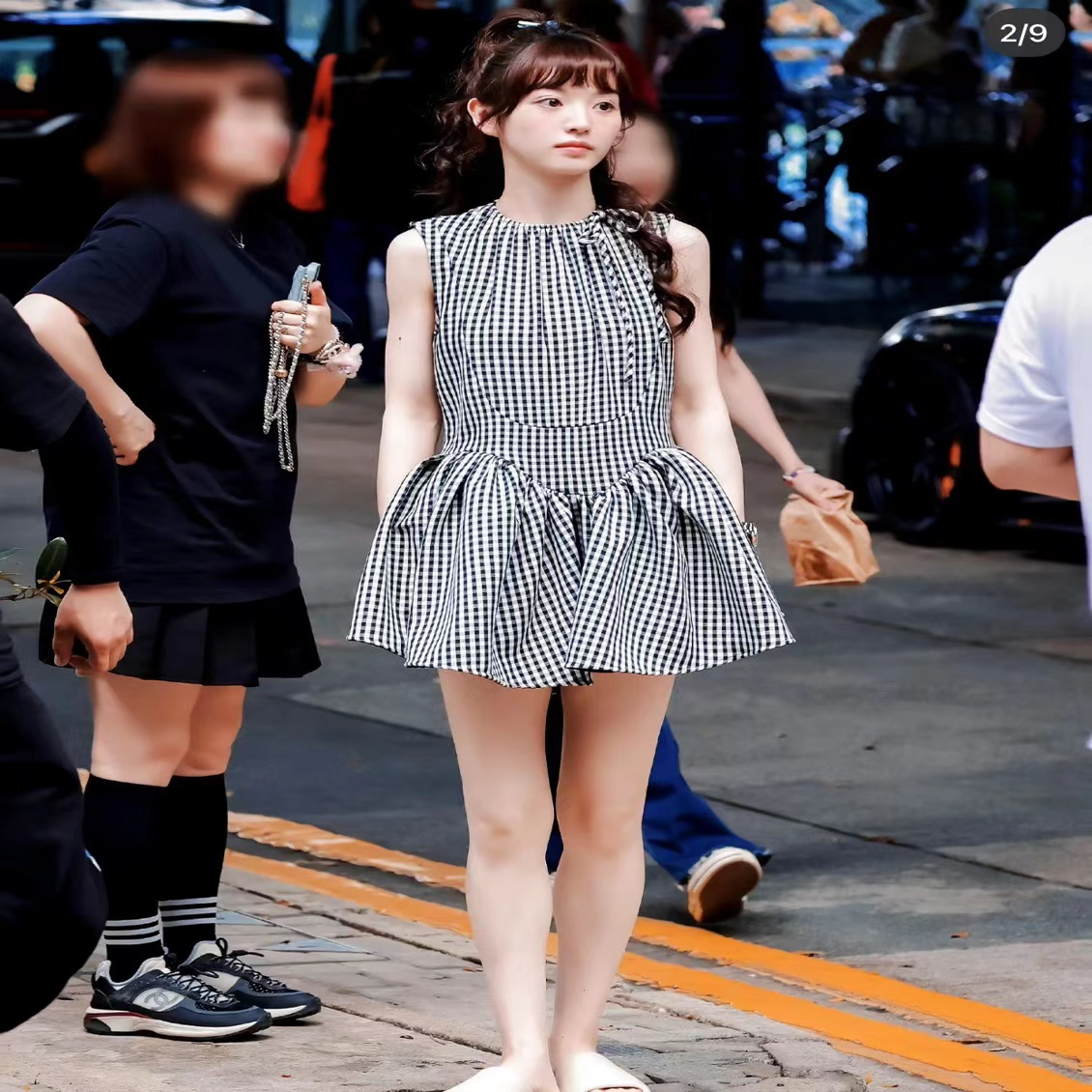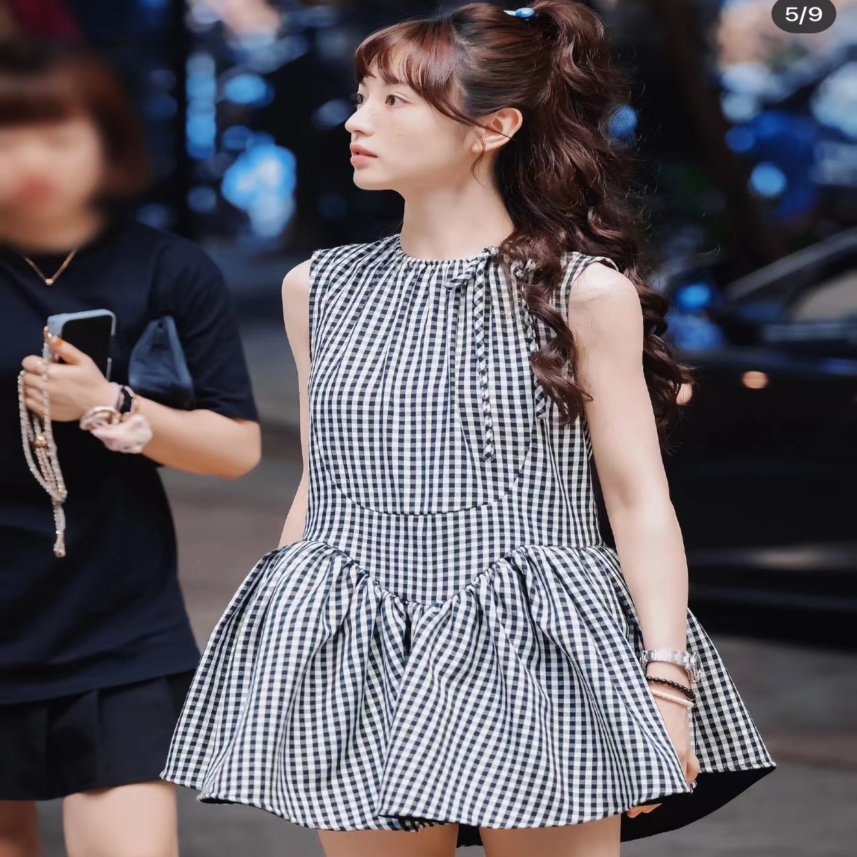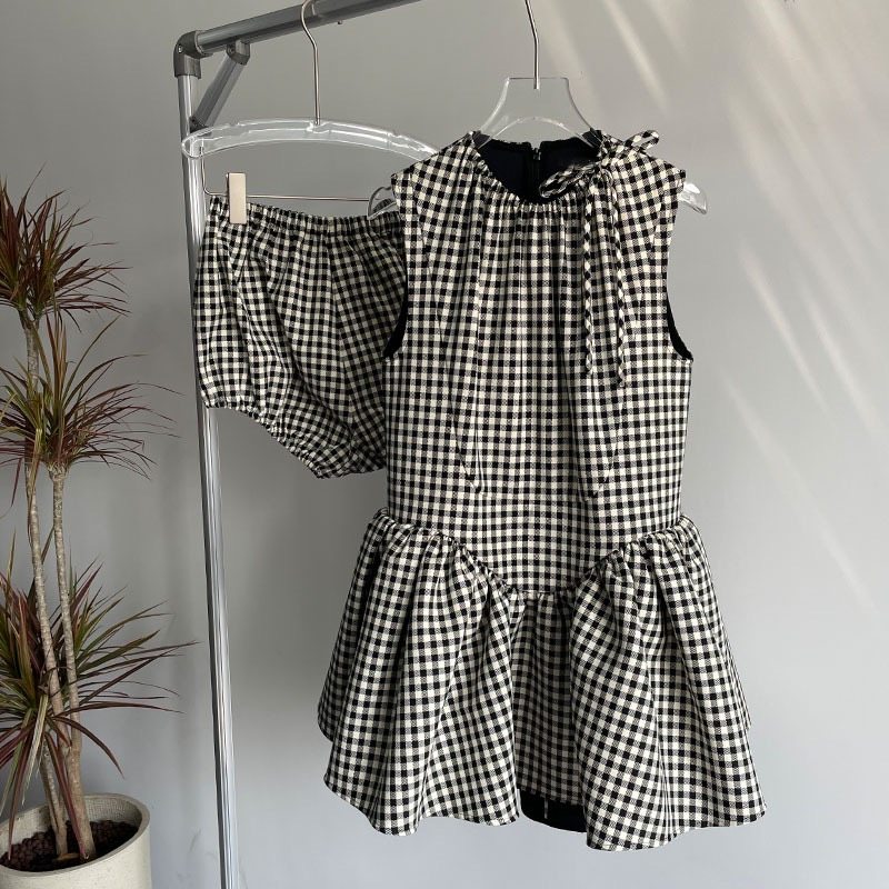 花一【田曦薇同款】23ss格纹无袖蓬蓬短款娃娃裙少女感减龄连衣裙