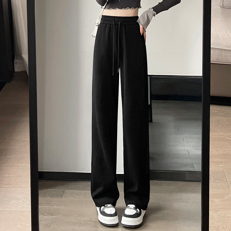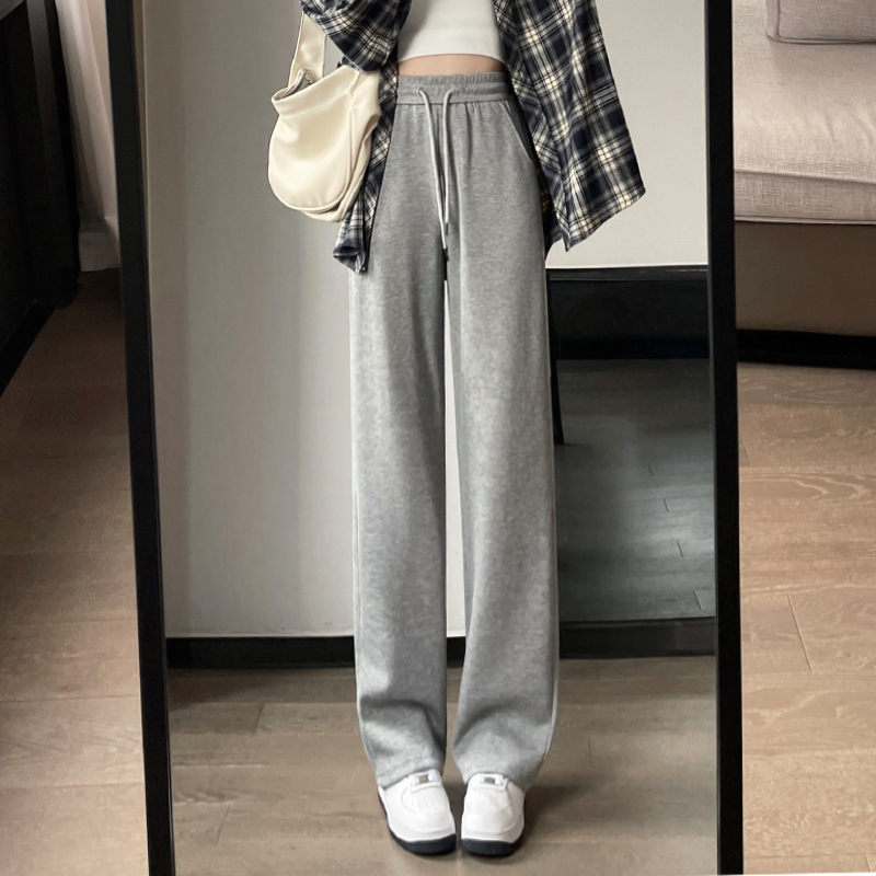 灰色阔腿裤女春秋季加厚窄版高腰休闲裤垂感直筒显瘦针织运动裤子