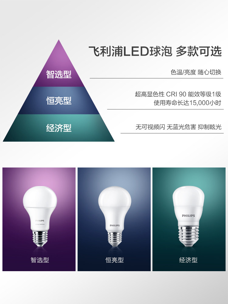 飞利浦led灯泡节能灯E27螺口E14球泡家用超亮商用大功率光源灯泡