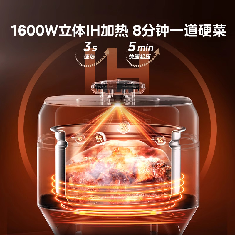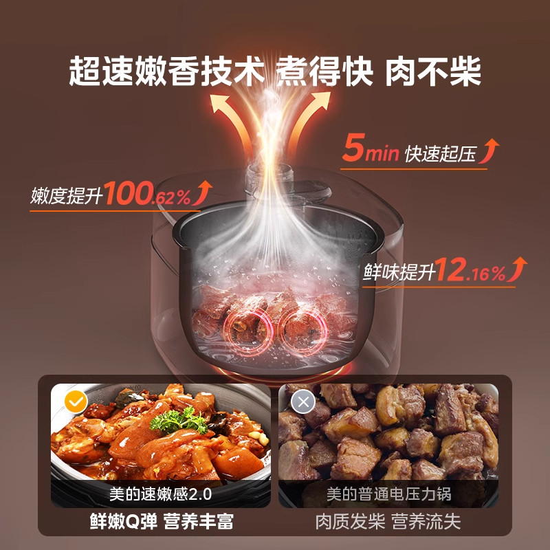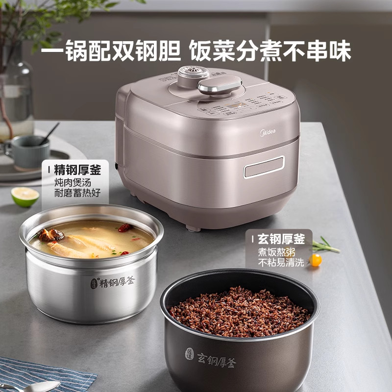 美的IH电压力锅5L双胆家用智能预约多功能不锈钢高压锅大容量饭煲