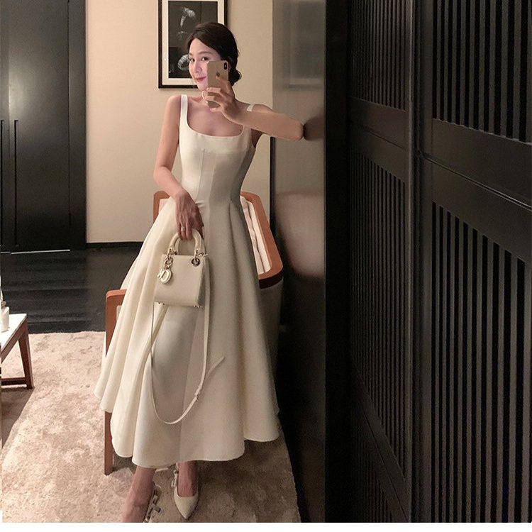 白色吊带连衣裙女赫本法式小众生日高端精致夏季海边度假绝美礼服