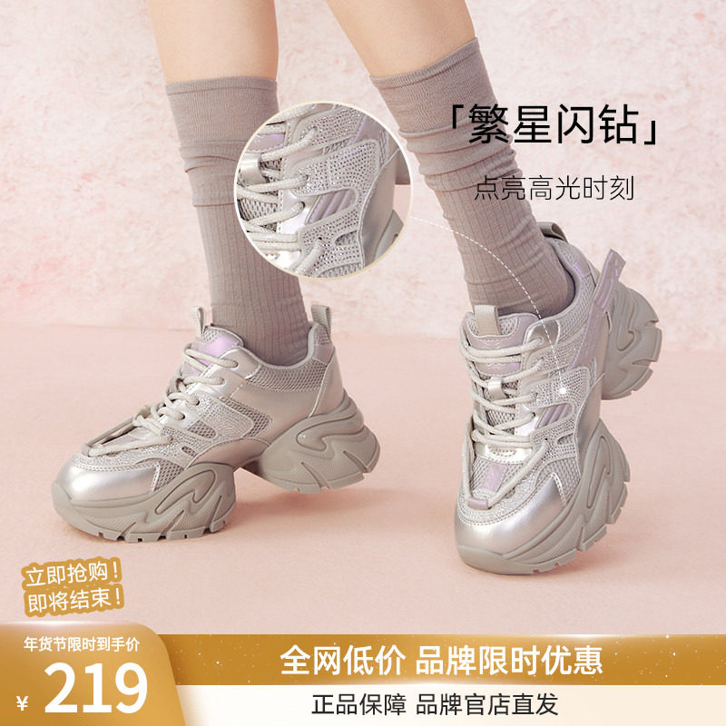 【漫步者】百思图25春夏商场新款厚底老爹鞋女运动休闲鞋A8882AM5