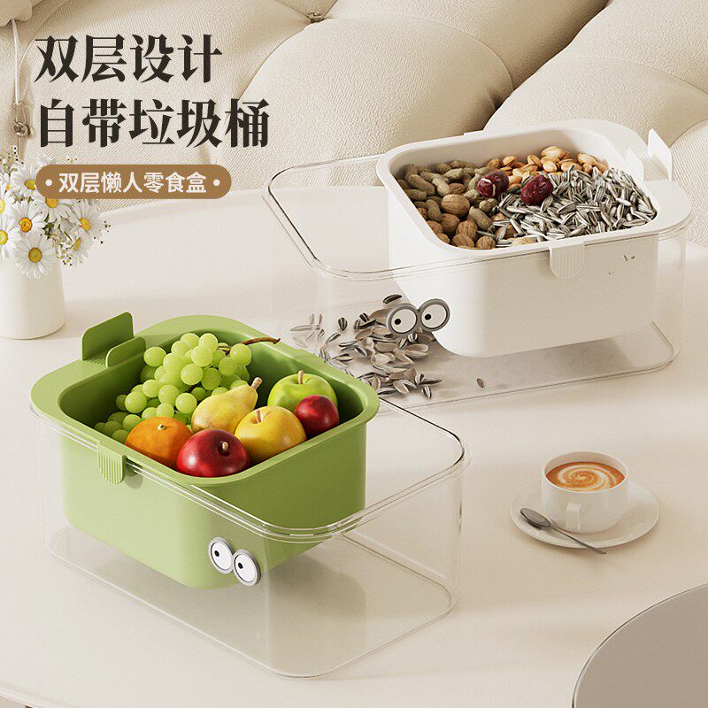 ins风懒人神器沥水篮家用客厅零食水果储物盆双层加厚果盘嗑瓜子