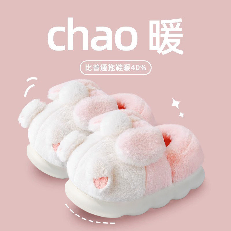 可爱棉拖鞋带后跟保暖冬季居家