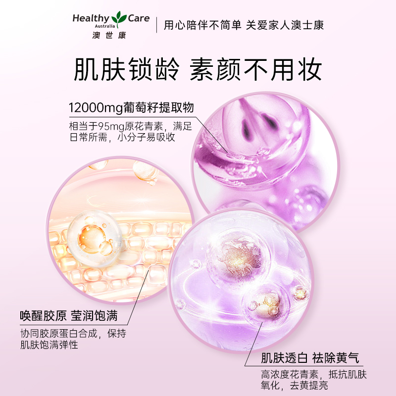 Healthy Care葡萄籽澳洲花青素opc精华胶囊内服正品美容焕白180粒