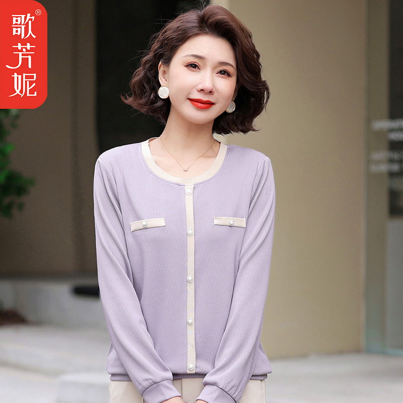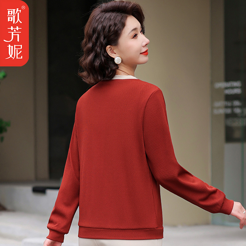 时尚气质长袖T恤中老年女装春秋大码上衣中年妈妈春装洋气打底衫
