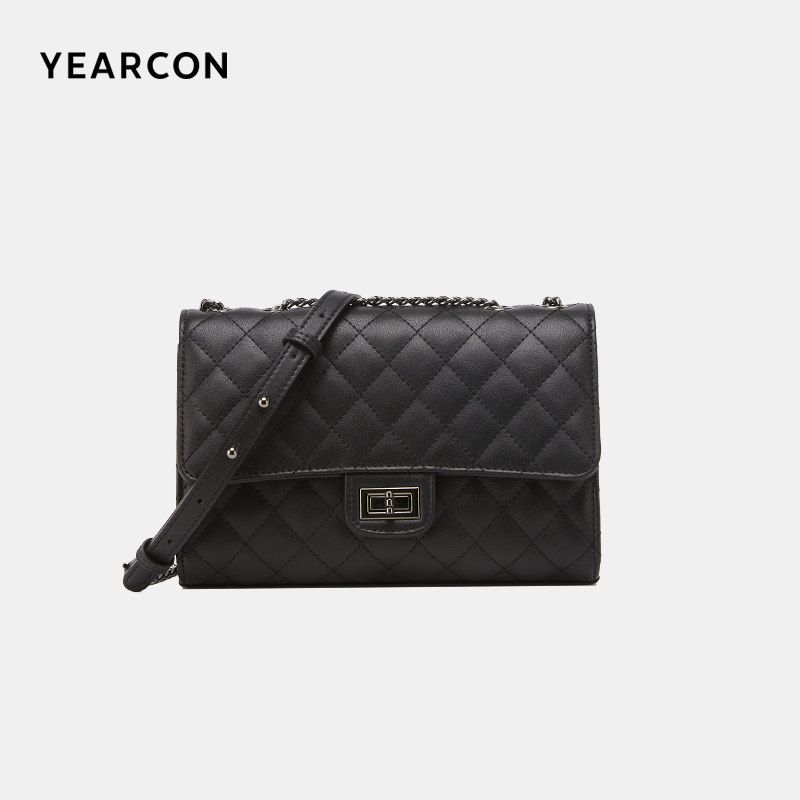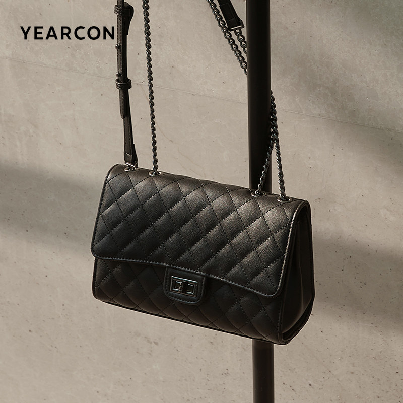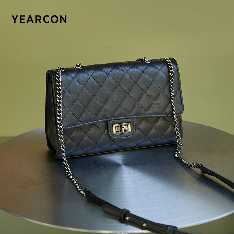 牛皮小方包意尔康菱格链条潮流
