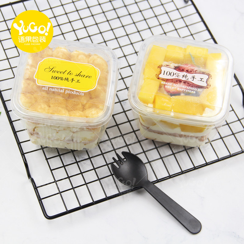 烘焙方形慕斯杯豆乳木糠千层蛋糕包装盒水果捞酸奶布丁冰淇淋杯子