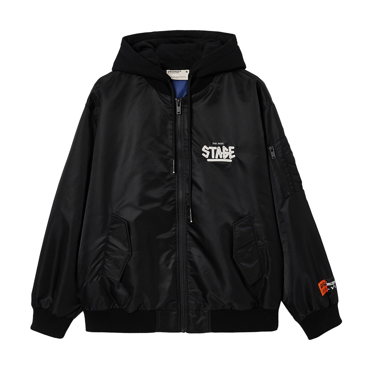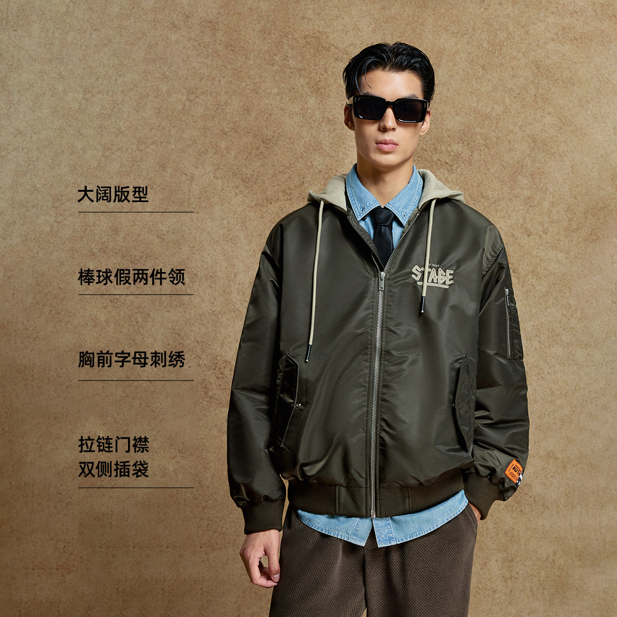 绫致杰克琼斯男棉服秋冬季刺绣假两件领休闲连帽廓形保暖外套