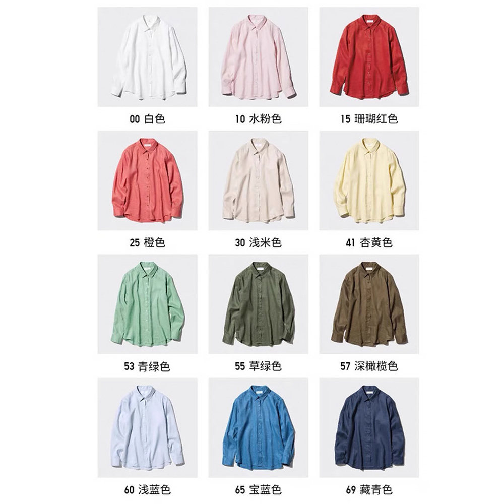 日潮跑腿【特惠清仓】优衣库女装法国麻衬衫长袖衬衣调衫薄外套